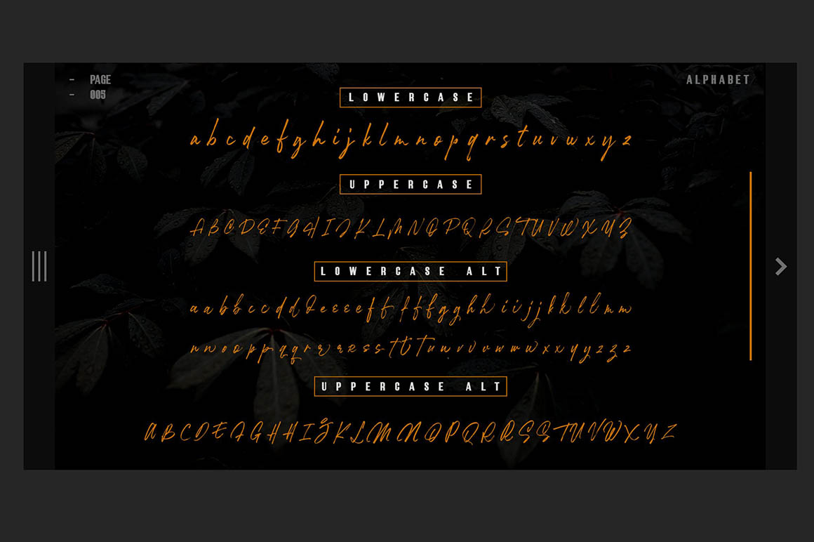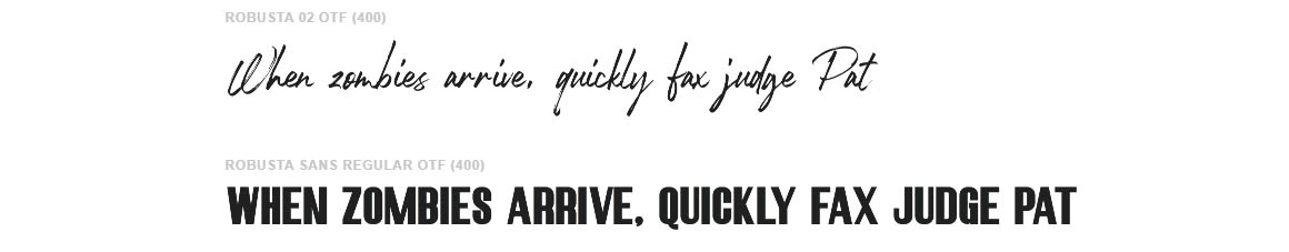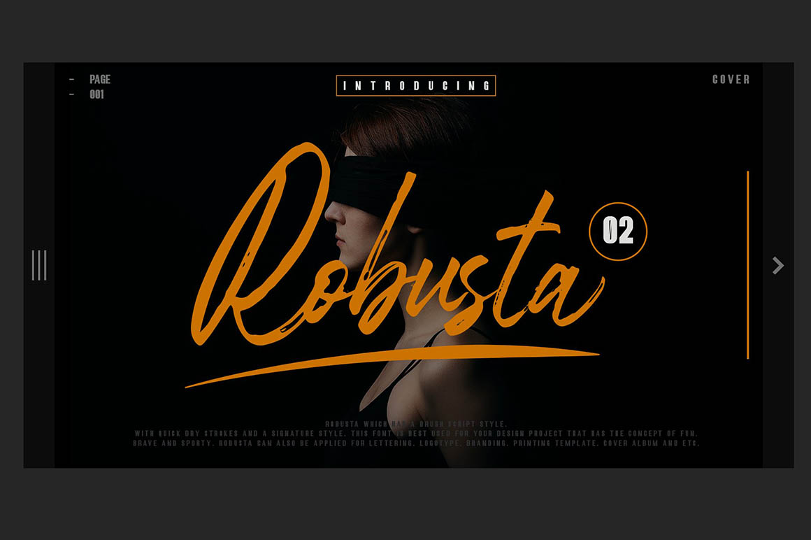 Robusta V.02 is perfectly suited to signature, stationery, logo, typography quotes, magazine or book cover, website header, clothing, branding, packaging design and more. A handwritten script font containing upper and lowercase characters, numerals and a large range of punctuation.