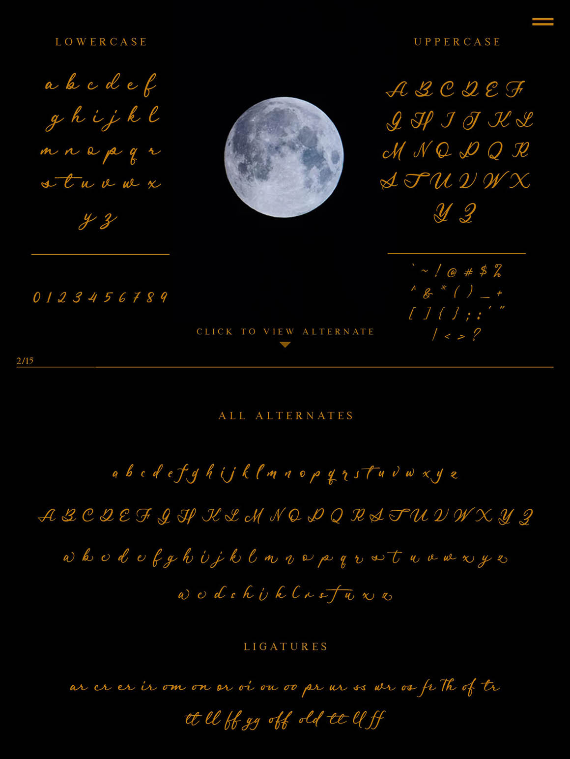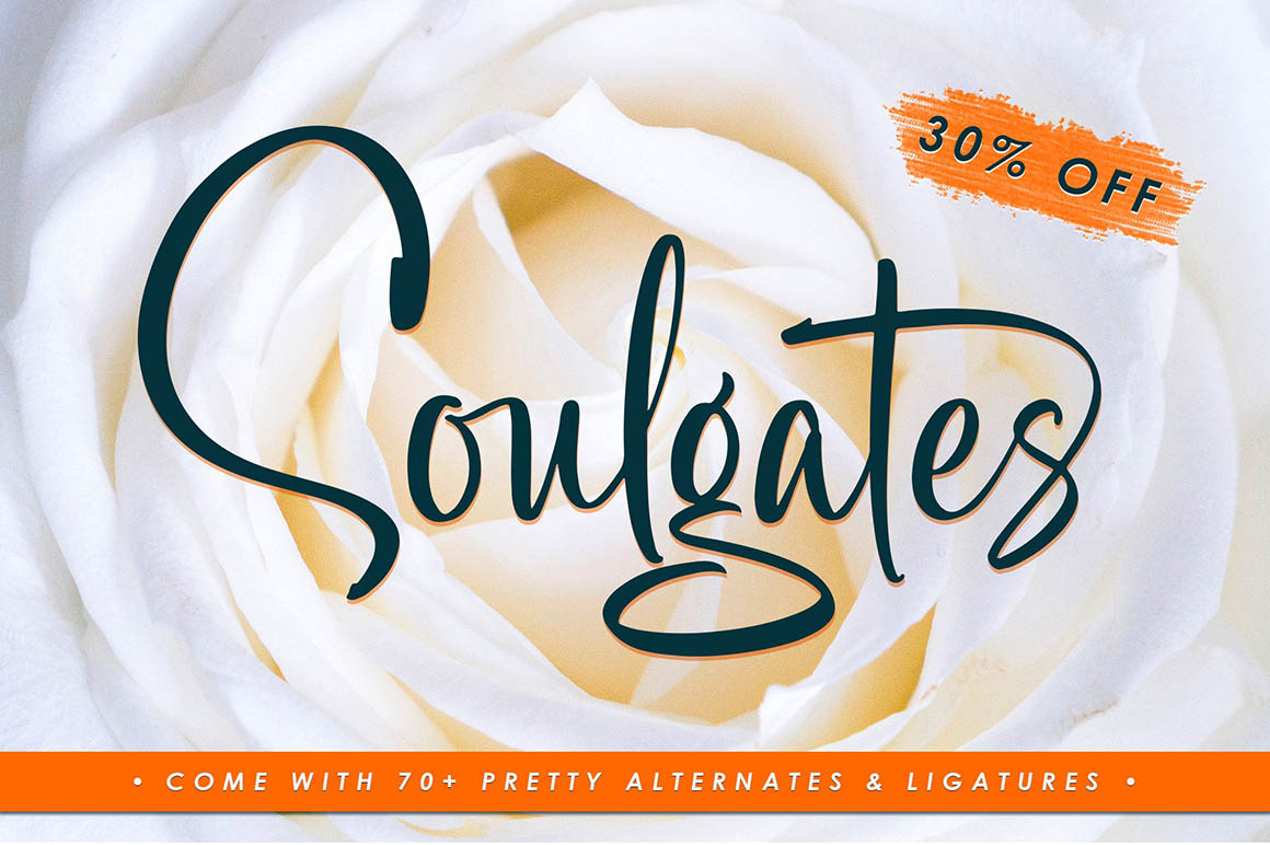 Soulgates is a brush script typeface that every single letter contains beautiful charater alternates. This font come with 70+ Ligatures, Contextual alternates, and Stylistic alternates. A classy font that will give your projects looks modern and unique.