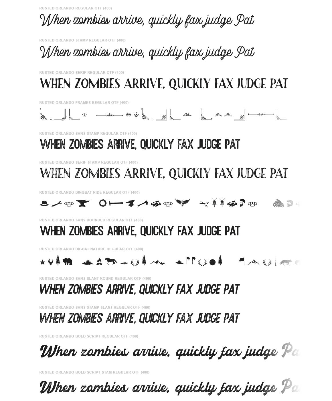 Rusted Orlando Font features uppercase, lowercase, numeral, punctuation & symbol,ligatures, stylistic set, multilingual support, clean and stamp style.