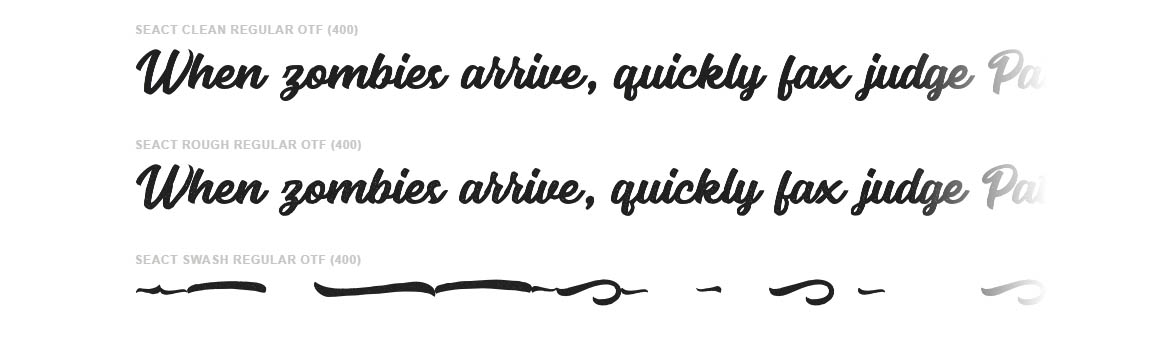 Seact is a sweet and fresh font with clean and rough style. Seact is great for logotype, typography, poster, printed quotes, invitations, cards, product packaging, headers, letterhead, apparel design, label, and etc. Seact comes with uppercase, lowercase, numerals, punctuation and multilingual characters.