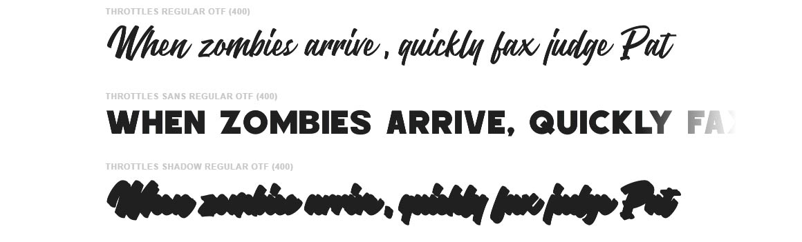 The project of Trottles created specifically for purpose logotype. This font comes with layered system (regular and shadow). Alternate characters has about 3 set (Contextual Alternates, Stylistic Alternates, and Swash). For extras Trottles has Sans Font for perfect combination. In addition to the purposes of logotype Trottles Font can also be applied in the esport logo, sticker, apparel, bag, magazine, website headlines, packaging, branding, quotes, business cards, and more. We hope this can make inspire for your work.