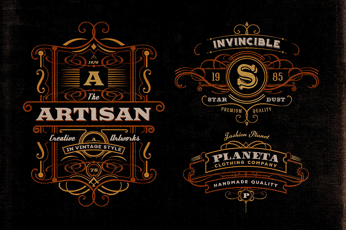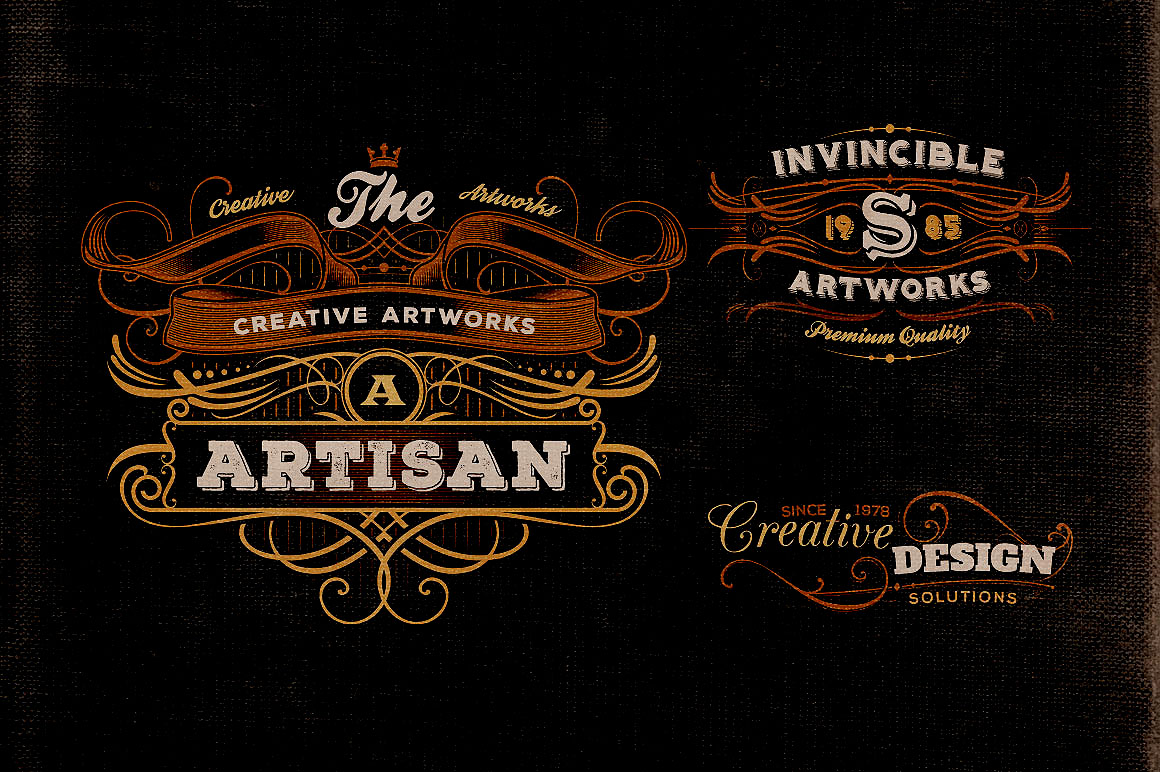 1B. 12 Retro/Vintage Badges by Cruzine Design