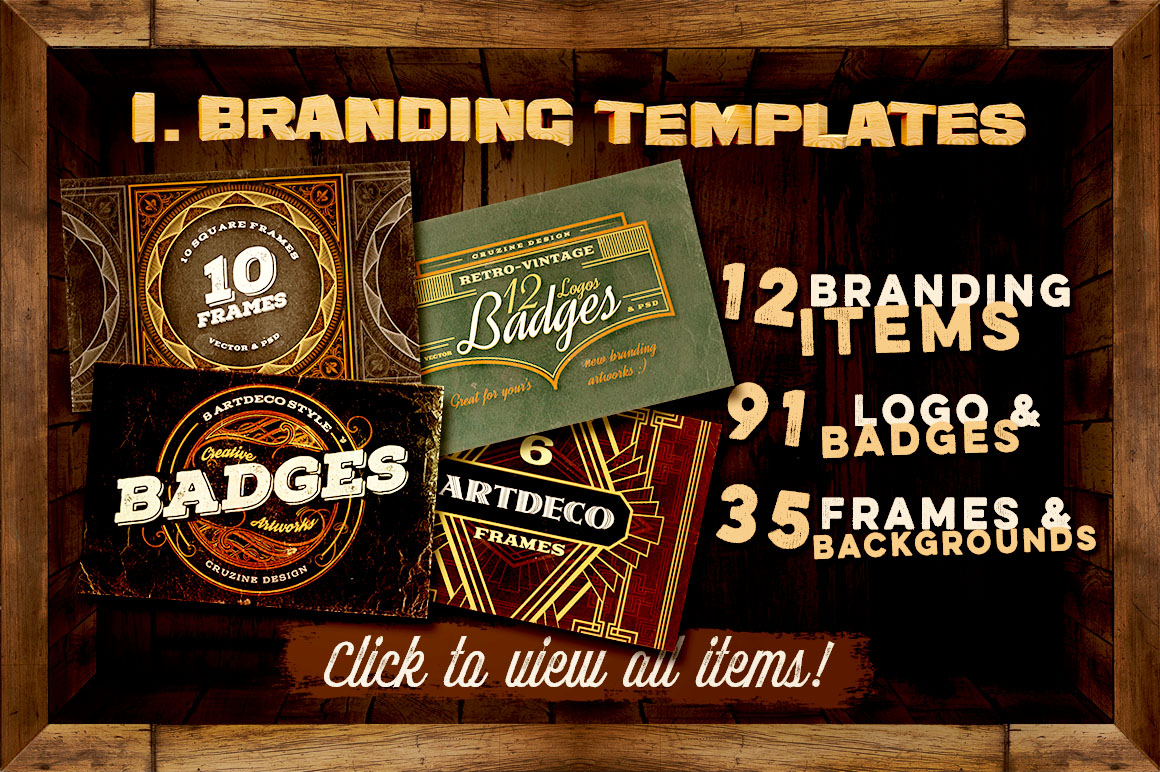 1. Branding Templates (12 items, 91 logo/badge templates & 35 frames/backgrounds)