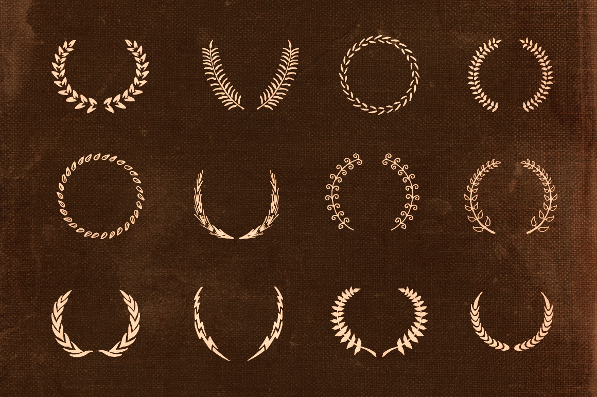 4D. 12 Hand Illustrated Laurels by Cruzine Design