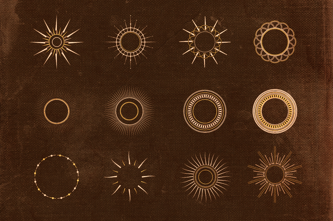 4E. 12 Hand Illustrated Sunbursts by Cruzine Design