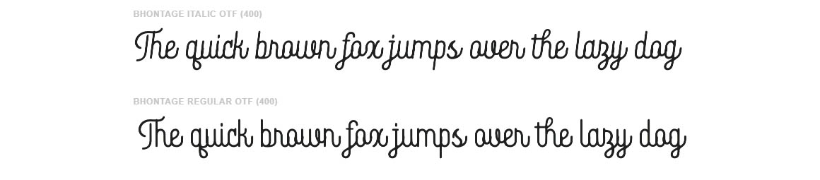 Bhontage is a powerful multipurpose handwritten font script that is suitable for all types of projects. It contains 333 total glyphs and 148 alternative characters that are divided into several OpenType features such as Ligature, alternatives, swash, style sets and alternative styles that allow you to mix and match letter pairs that match your design. You can access all these alternative characters by using OpenType smart programs such as Adobe Illustrator and Adobe InDesign. Bhontage Script is available in 2 different styles (Regular and Italic) in the .OTF, TTF format. Bhontage Script is coded with PUA Unicode, which allows full access to all the extra characters without having special designing software. Mac users can use Font Book , and Windows users can use Character Map to view and copy any of the extra characters to paste into your favourite text editor/app.