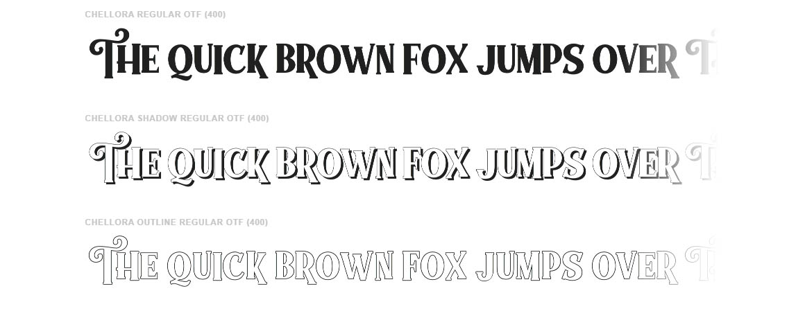 I am very happy to finally release Chellora Typeface. Chellora is the Bevelled Typeface which gives Simple effect letters. The effect allows it to be plated, giving a smoother and smoother appearance. Chellora comes with 3 different choices: Regular, Shadow, Filled Outline, Chellora is a bold Sans Serif that is perfect for Logos, Signage, Apparel, Headlines, Etc. This typeface is a great addition to any collection because it saves time with post-production effects, this allows you to easily measure effects. This product contains 3 Font Files.