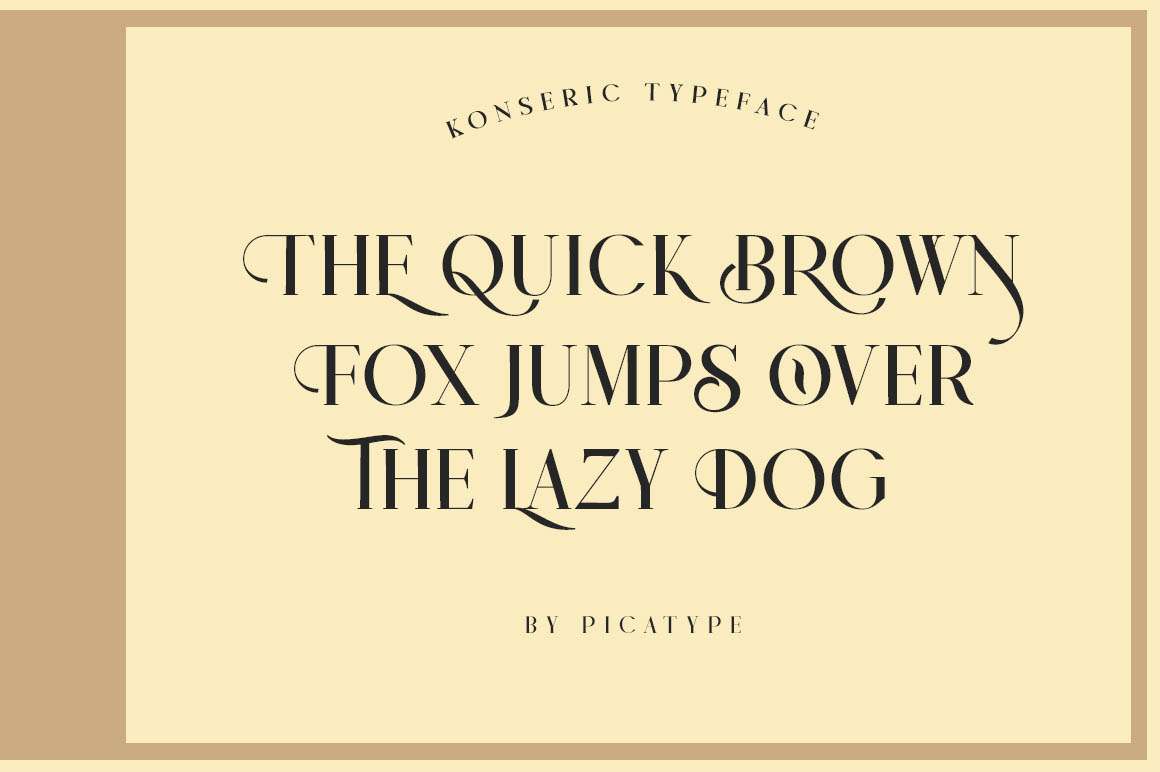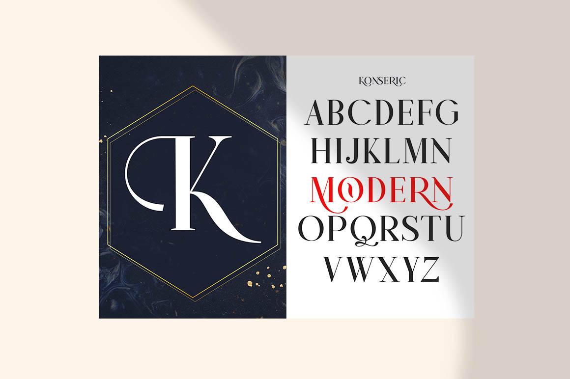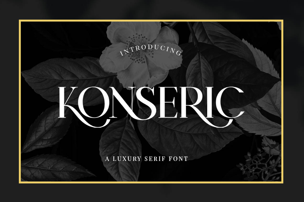 Konseric is an elegant serif font of a classic style that has been modernized with unique curves and cut-ins making it one of the most memorable top fonts on the market. It represents vintage aesthetics in a modern and minimalist way. Fonts include special uppercase letters, alternative characters and beautiful ties and multilingual support. This versatile font can be used for wordmark logos, mastheads, pull quotes & monograms that show feminine and masculine qualities, elegant packaging or invitation cards and almost all creative designs.