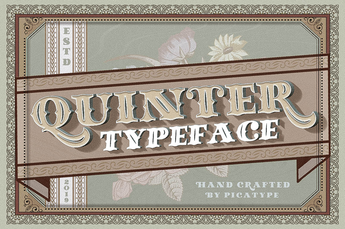 Quinter Typeface is inspired by the writing on the vintage beer label from the good old days. but still has a strong modern appearance. come with 2 types of styles, Each combination has been carefully crafted to make your design look better. Ideal for product names, packages, labels, old-fashioned coffee shops, bars and everything with special characteristics in the past. This combination allows you to easily build beautiful vintage designs in a short amount of time.