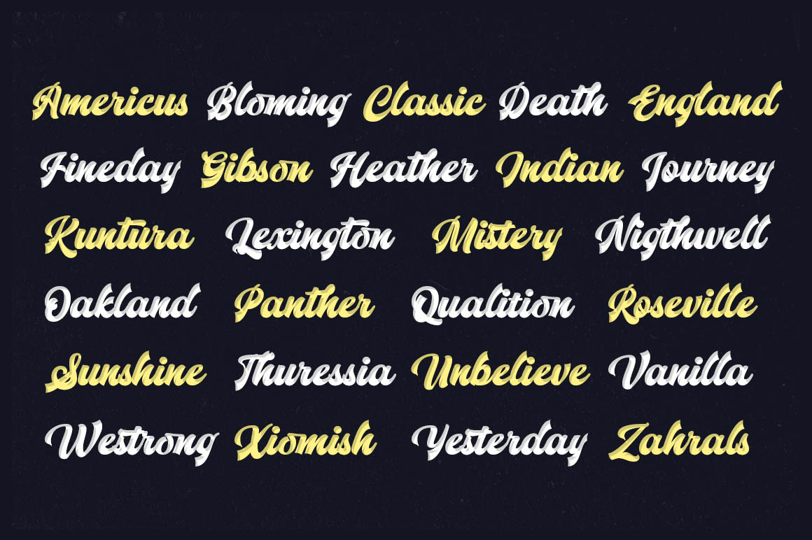 Nigthwel Script Inspired by Retro style and combination with Hand Lettering style.Nigthwel have many alternative swash & ligatures character and have opentype features like a stylistic alternatice, stylistic set, ligature and swash so you can mix and match like a you want. Nigthwel Script came with open type features such stylistic alternates, stylistic sets & ligatures good for logotype, poster, badge, book cover, tshirt design,handwritten quotes, product packaging, header, poster, merchandise, social media & greeting cards.