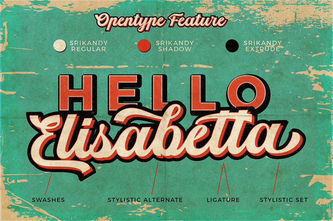 Srikandy Script looks bold and straight forward. This Srikandy Script comes in three types, ordinary and special. The special type has unique small slices that provide more personal touch and make the font look customizable. This font is suitable for use as logos, clothing, wedding invitations, signage, sports clubs, motorbikes / cars, etc. This font has many opentype features such as binder, alternative style, contextual alternative, swash, etc. and supports multiple languages.
