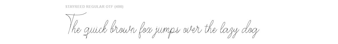 Stayreed Script calligraphy design, including Regular Script. This font is casual and pretty with swashes. Can used for various purposes. such as logo, product packaging, wedding invitations, branding, headlines, signage, labels, signature, book covers, posters, quotes and more. Stayreed Script features OpenType stylistic alternates, ligatures and International support for most Western Languages is included. To enable the OpenType Stylistic alternates, you need a program that supports OpenType features such as Adobe Illustrator CS, Adobe Indesign & CorelDraw X6-X7, Microsoft Word 2010 or later versions.