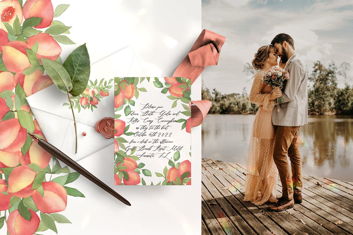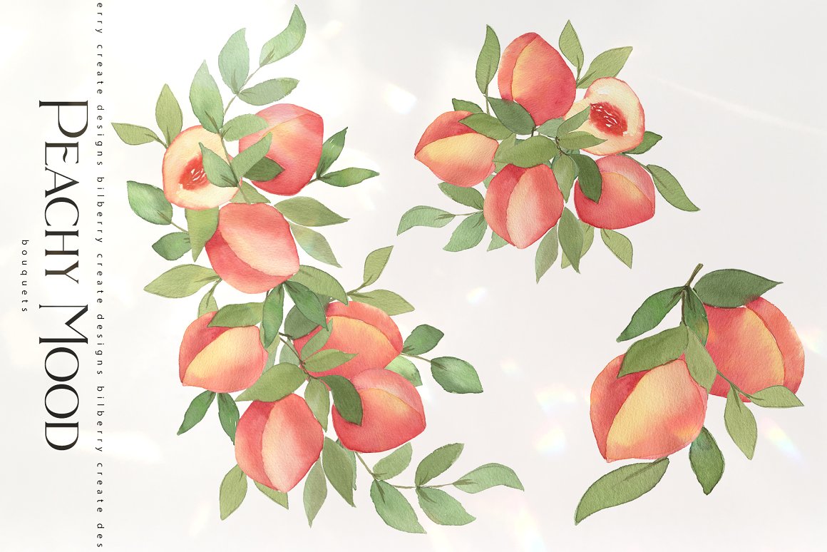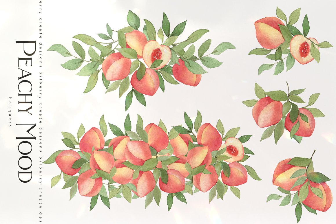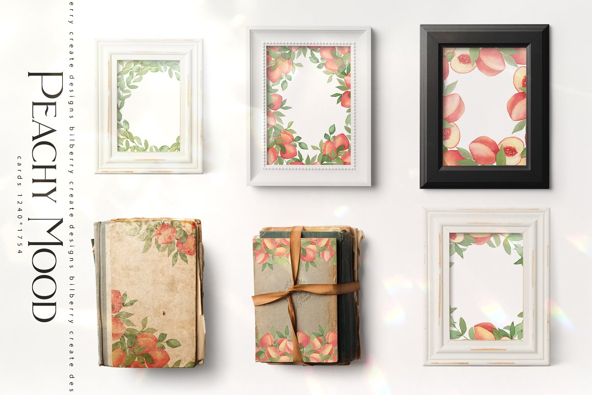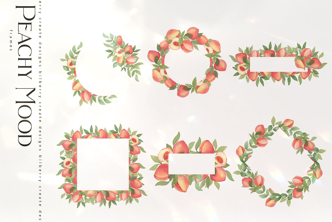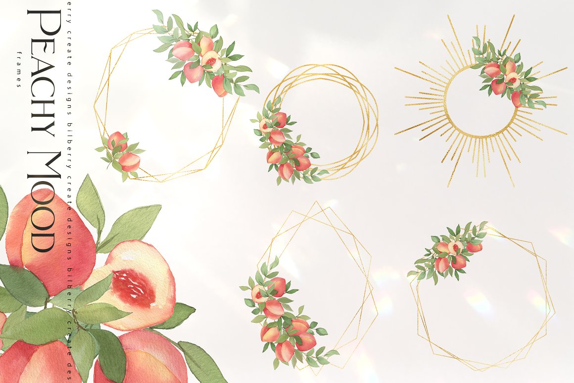 Peachy Mood new design set filled individual elements, bouquets, gold frames, cards 1240*1754, wreath, seamless pattern, frames, all elements ready to use. Be sure to click on the image to see all elements.