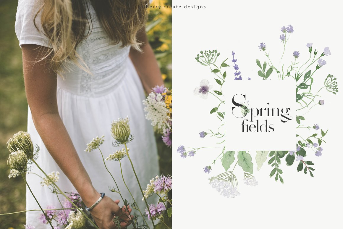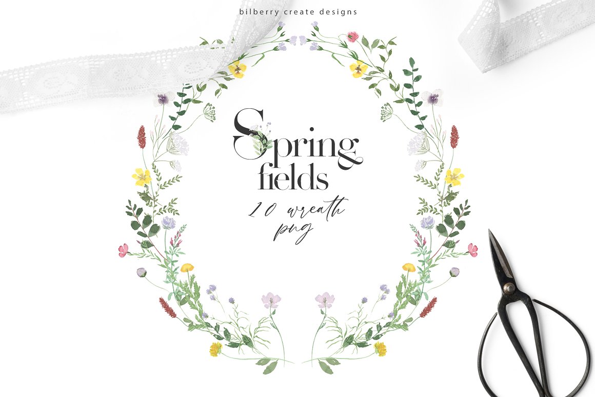 Spring fields NEW design set filled over 210 elements , individual elements, seamless patterns, wreath, bouquets, alphabet and more. Be sure to click on the image to see all elements.
