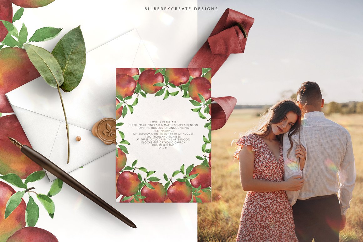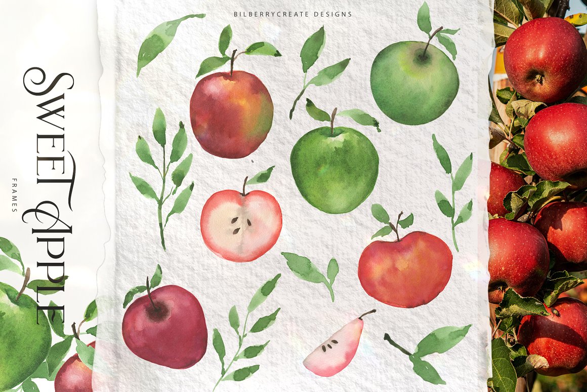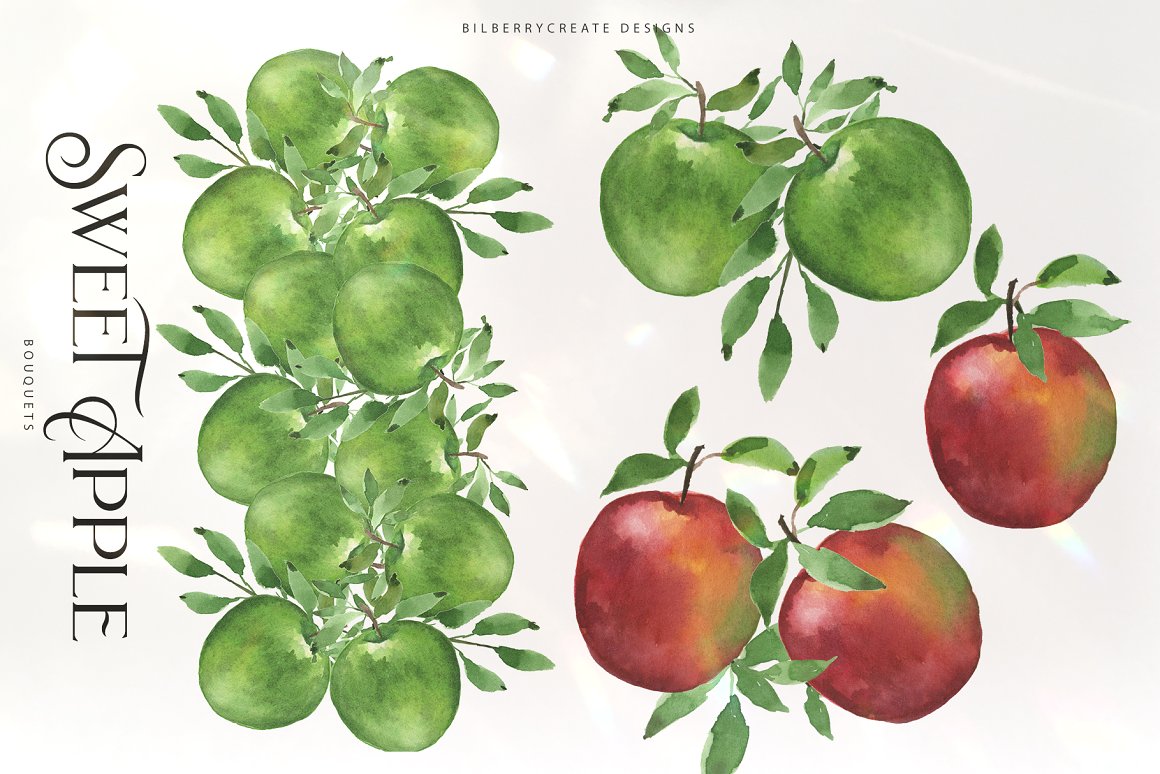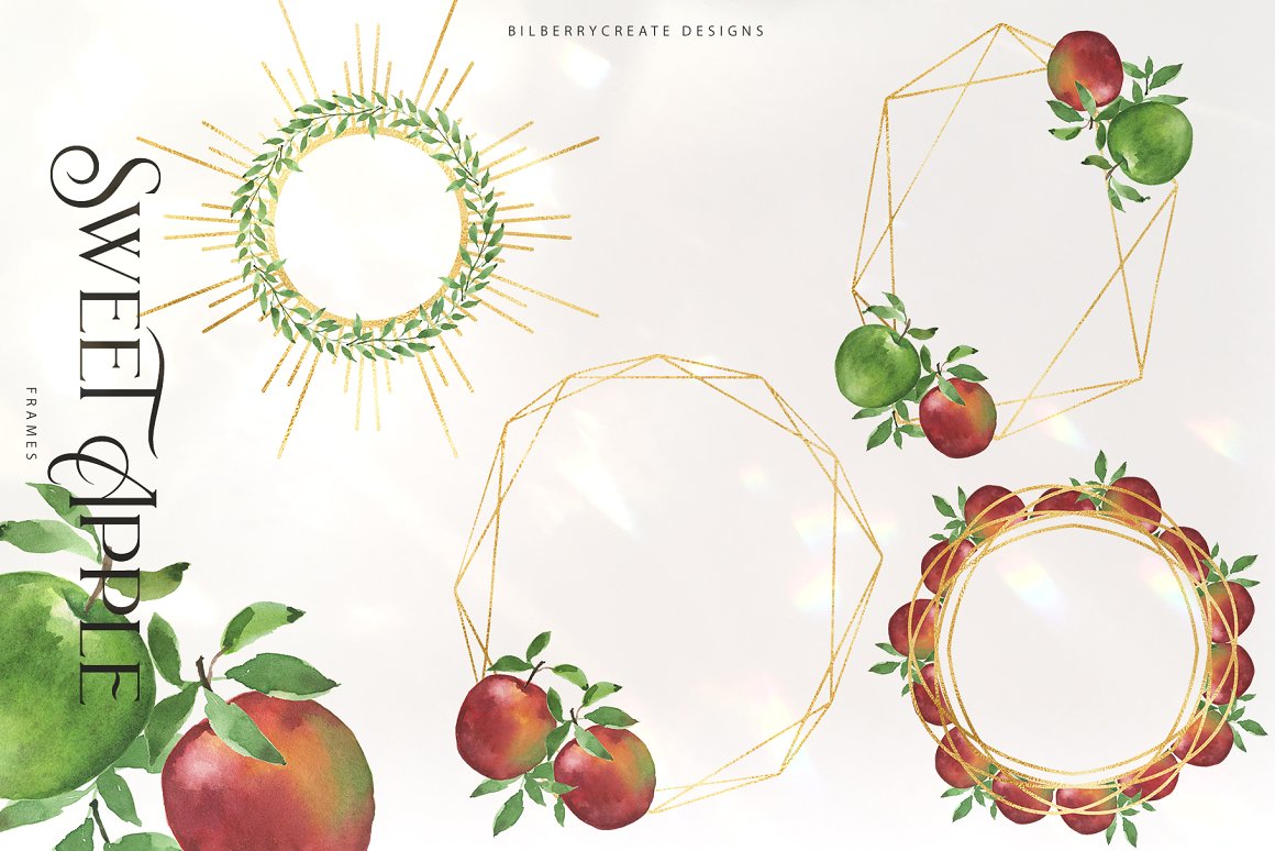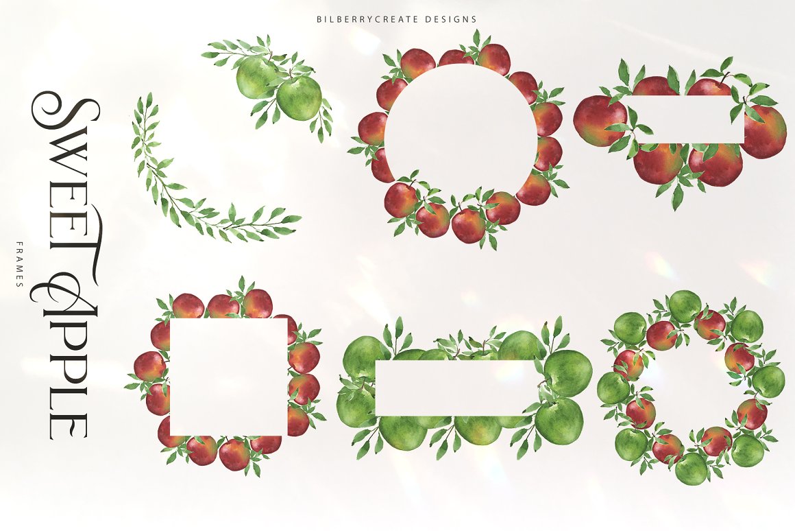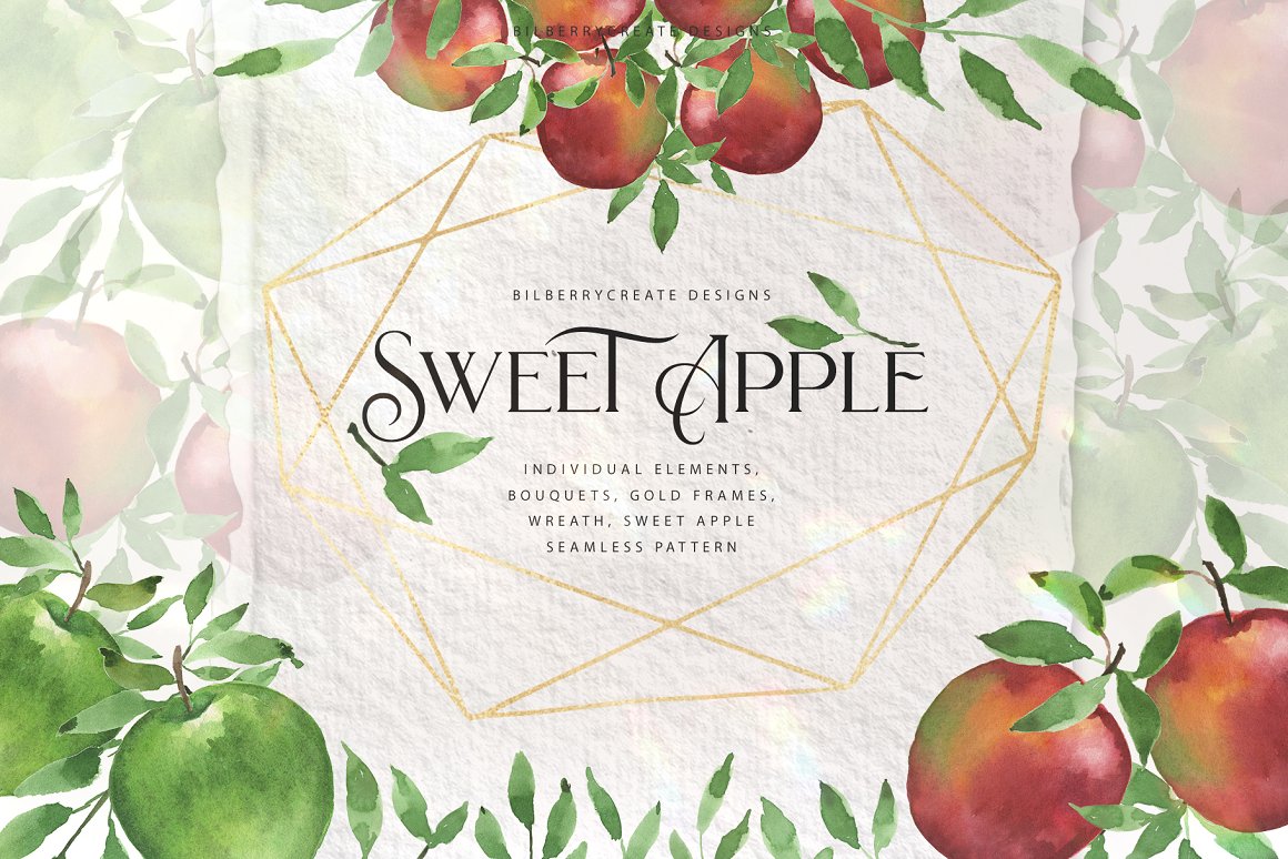Sweet apple new design set filled individual elements, bouquets, gold frames, wreath, seamless pattern, frames, all elements ready to use. Be sure to click on the image to see all elements.