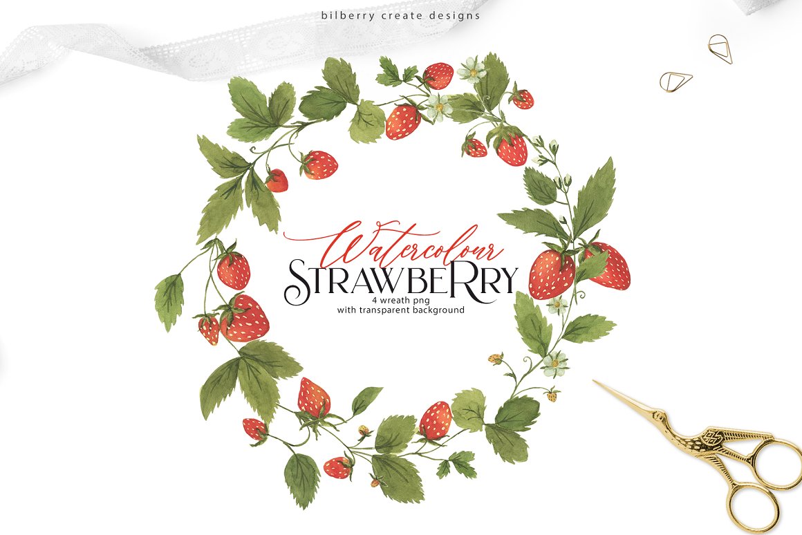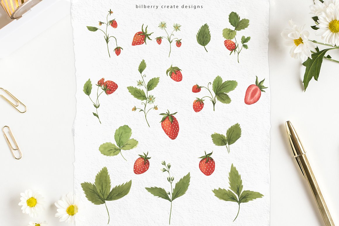 Watercolour Strawberry NEW design set filled individual elements, seamless patterns, wreath, compositions and more. Be sure to click on the image to see all elements.