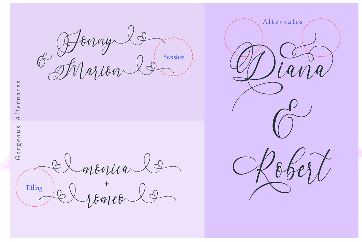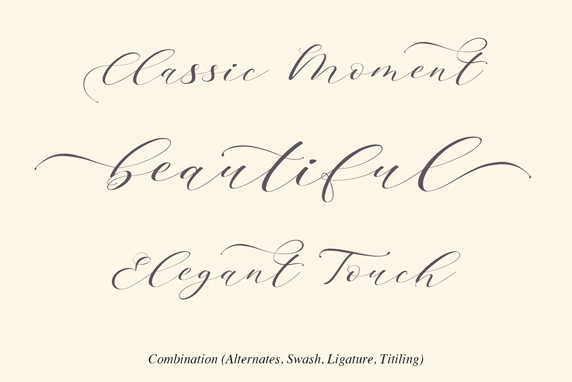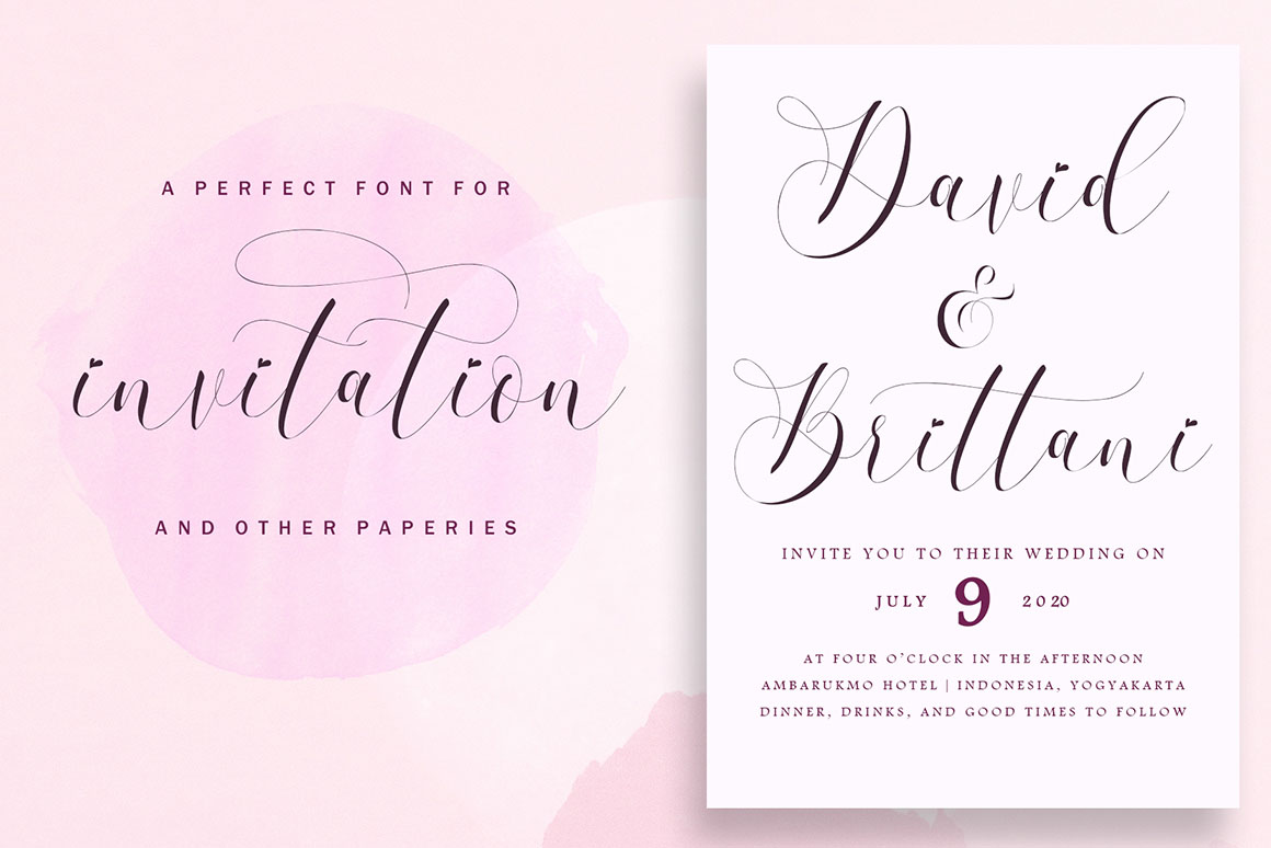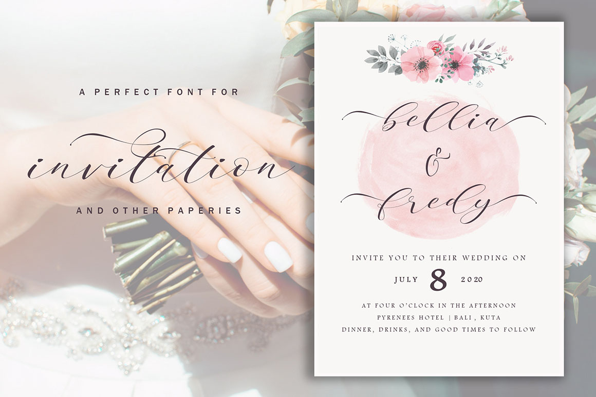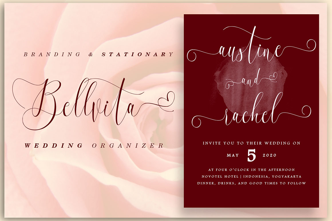 If you need some unique and professional quality custom font for your romantic style invitation, logo or slogan, this unique typography bundle from aldedesign is just for you! Great for your headings, wedding, invitation, signature, logos, branding, t-shirt, letterhead, signage, lable, news, posters, badges and many more. You can create true handwritten or signature texts without much effort.