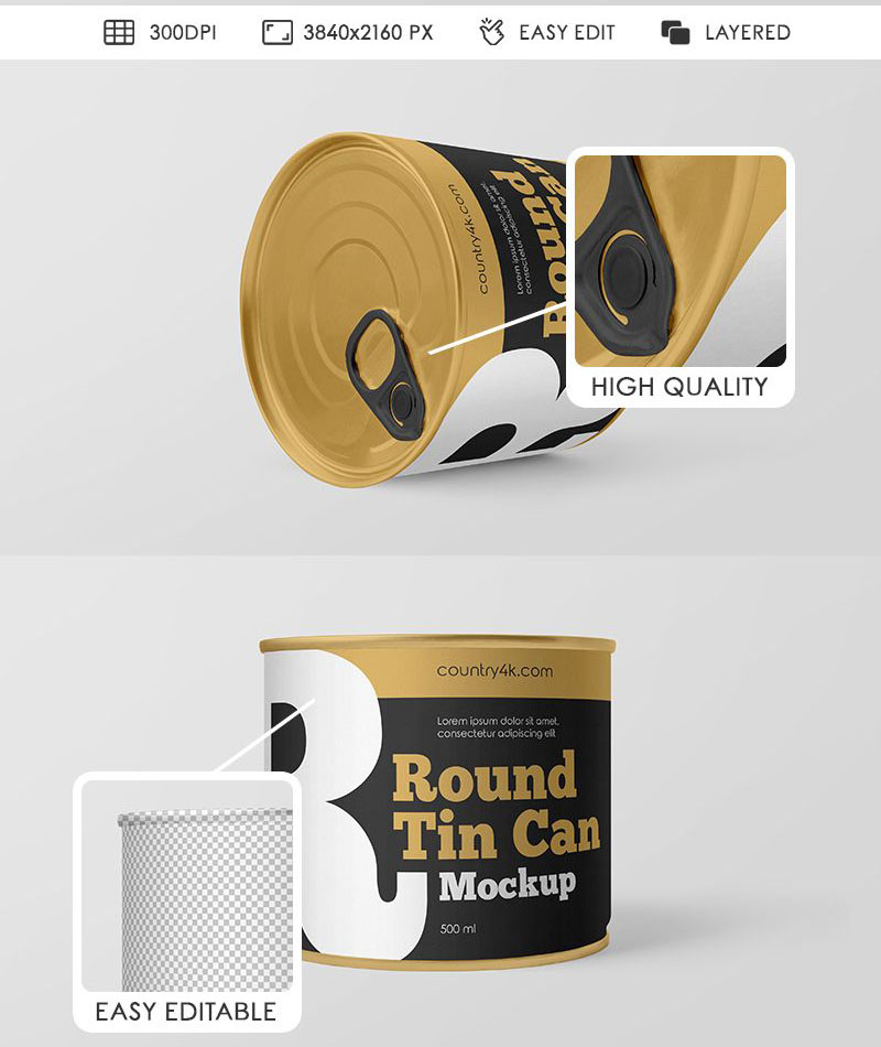 Round tin can – presentation mock-up template from country4k. Download and enjoy 😉