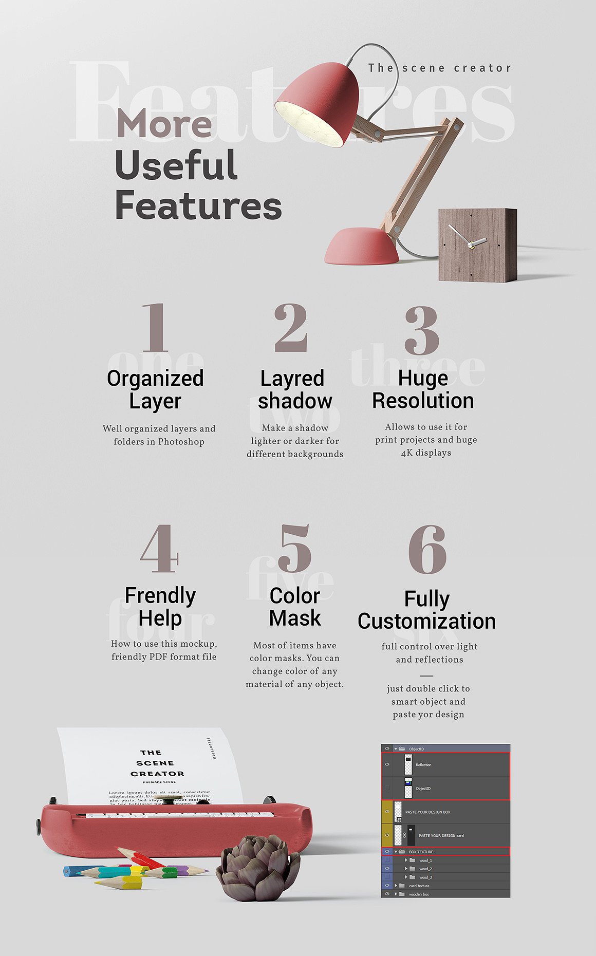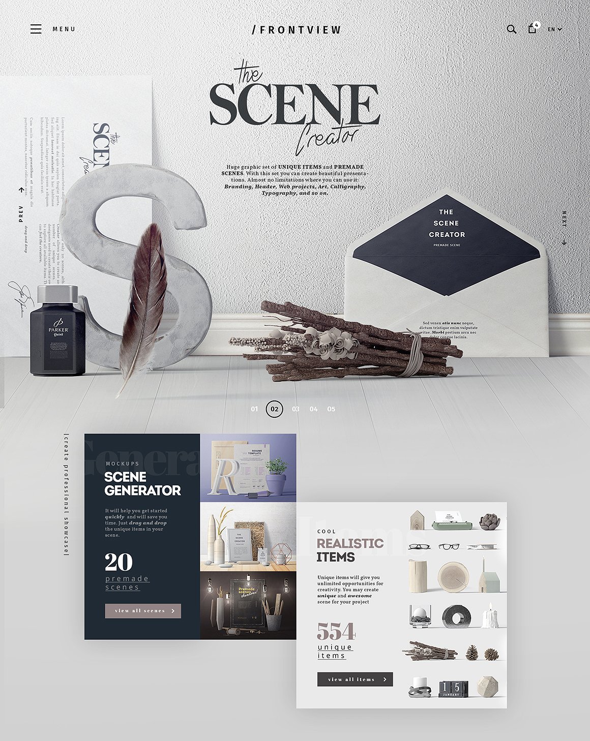 If you are looking for some professional 3D scene generator for Adobe Photoshop with attractive front view then you are at the right place because here you will get amazing bundle with 20 premade scenes & 554 unique items. Great for your branding, headers, web projects, art projects, typography or any print projets!