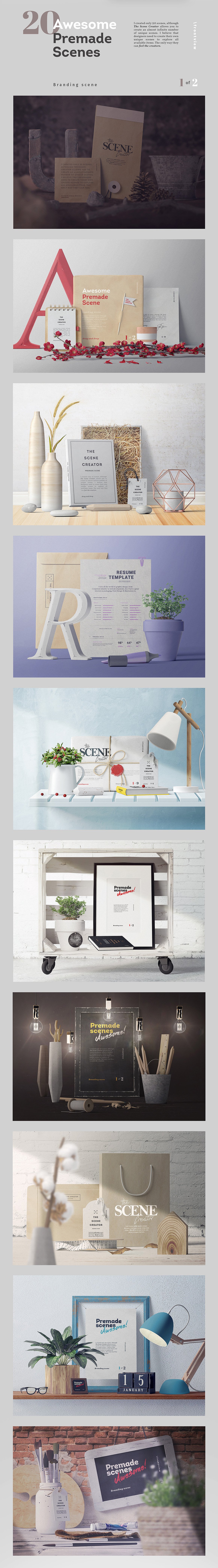 All these creative scenes and items are from Aleksey Belorukov. You can just play with all these layered scenes & items and create amazing and unique designs! 😉