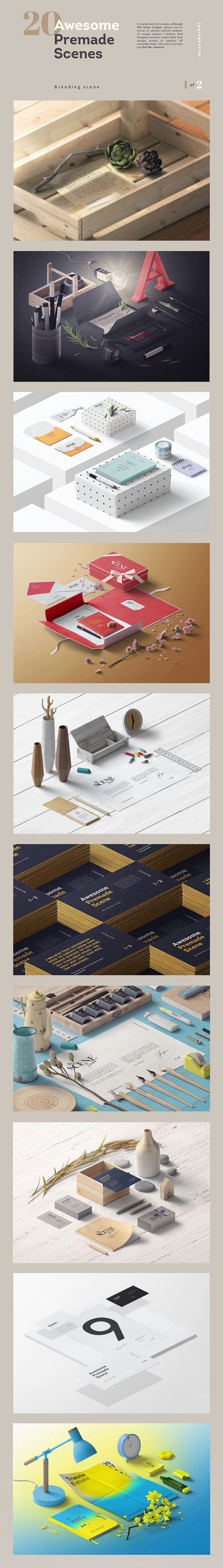 All these creative scenes and items are from Aleksey Belorukov. You can just play with all these layered scenes & items and create amazing and unique designs! 😉
