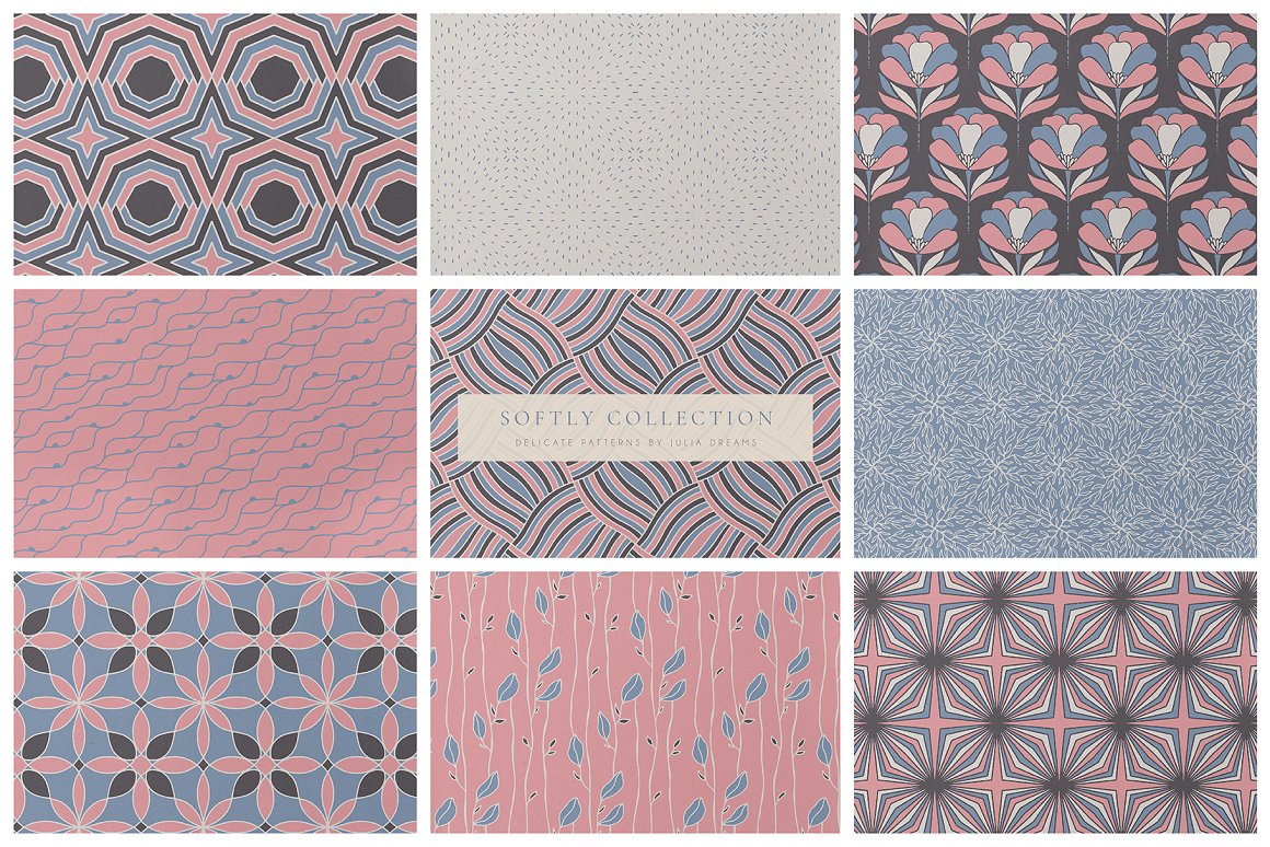 - Softly Collection [ 9 seamless patterns – ai, eps, jpg, vintage jpg and png with transparent background, 3600×3600 ]