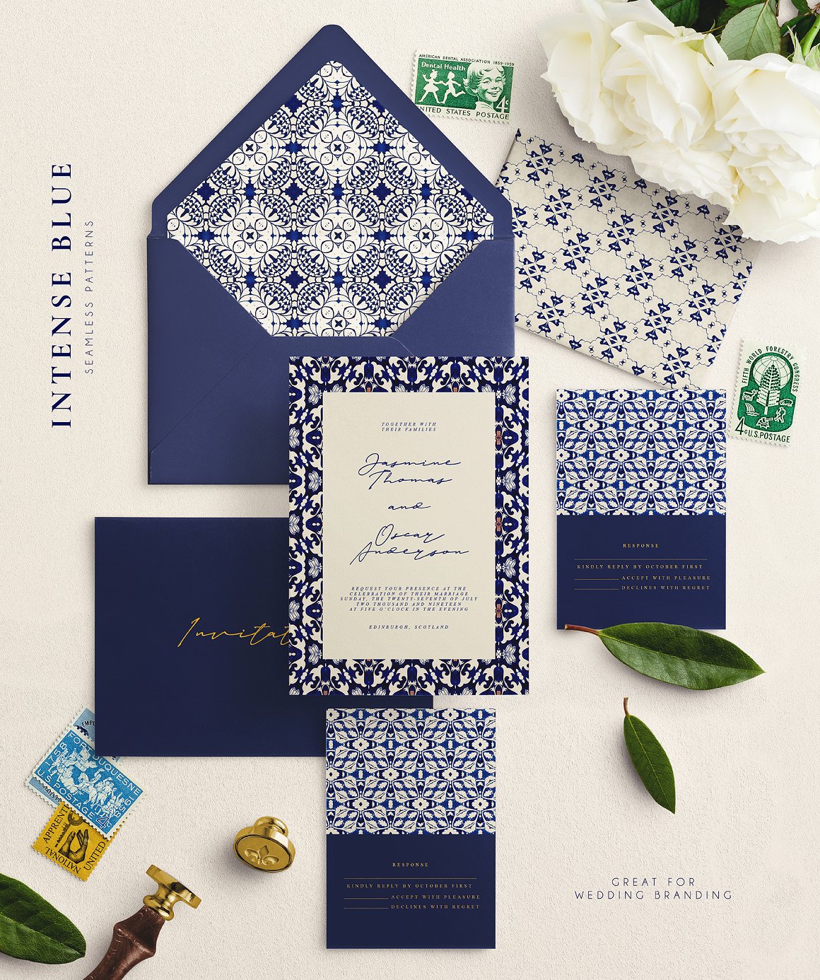 Intense Blue Seamless Patterns great for fabric, wallpaper, wrapping paper, posters, cards, branding, covers, gifts, social media accounts, scrapbooking, stickers, sites, blogs, invitations and much more!