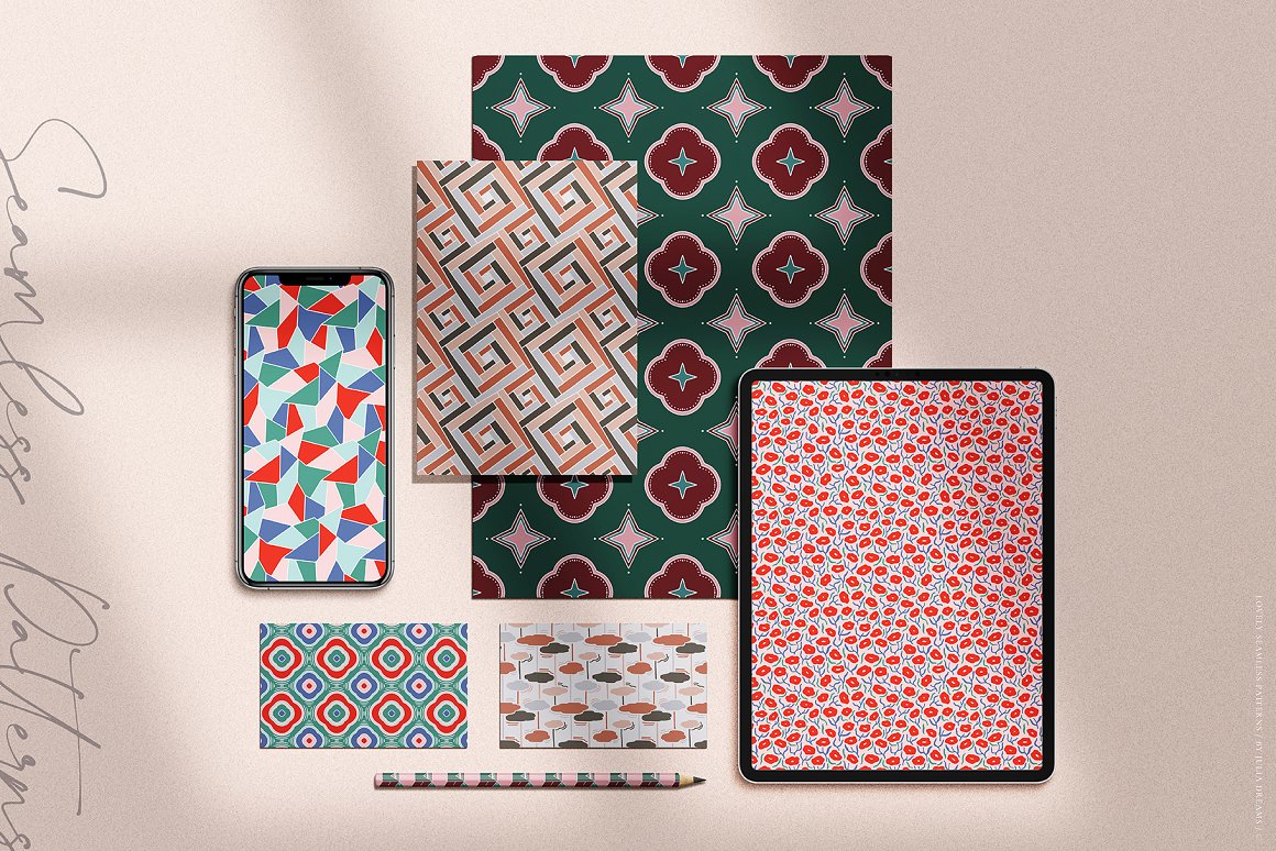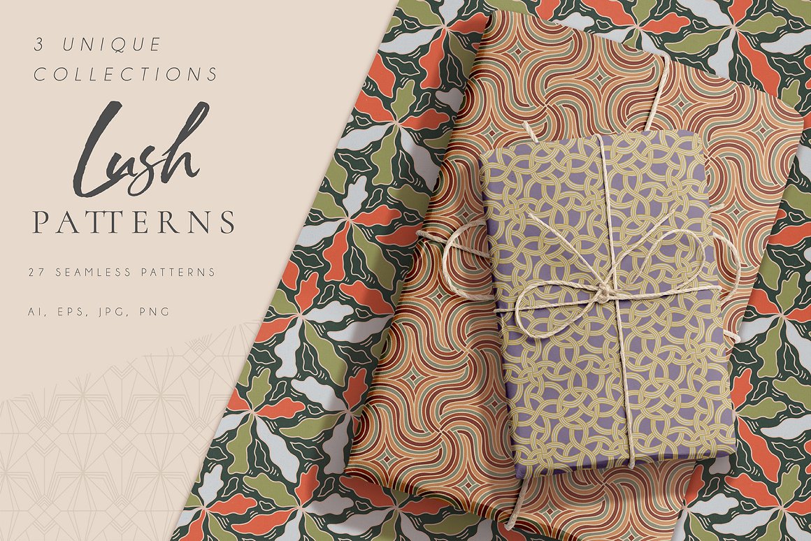 Lush Seamless Patterns Kit great for fabric, wallpaper, wrapping paper, posters, cards, branding, covers, gifts, social media accounts, scrapbooking, stickers, sites, blogs, invitations and much more!
