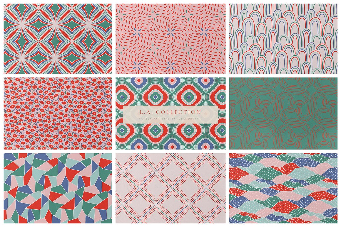 - Los Angeles Collection [ 9 seamless patterns – ai, eps, jpg, vintage jpg and png with transparent background, 3600×3600 ]