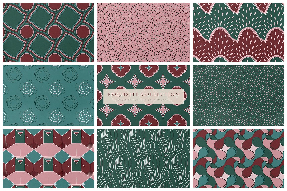 - Exquisite Collection [ 9 seamless patterns – ai, eps, jpg, vintage jpg and png with transparent background, 3600×3600 ]