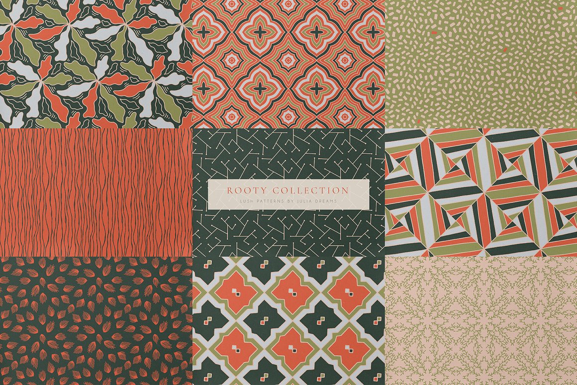 - Rooty Collection [ 9 seamless patterns – ai, eps, jpg, vintage jpg and png with transparent background, 3600×3600 ]