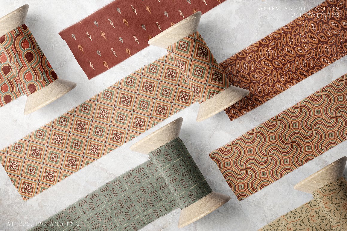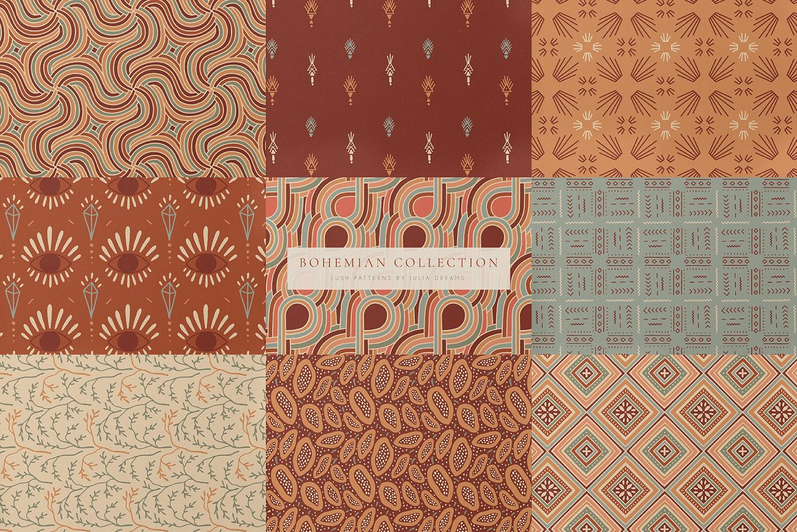 - Bohemian Collection [ 9 seamless patterns – ai, eps, jpg, vintage jpg and png with transparent background, 3600×3600 ]