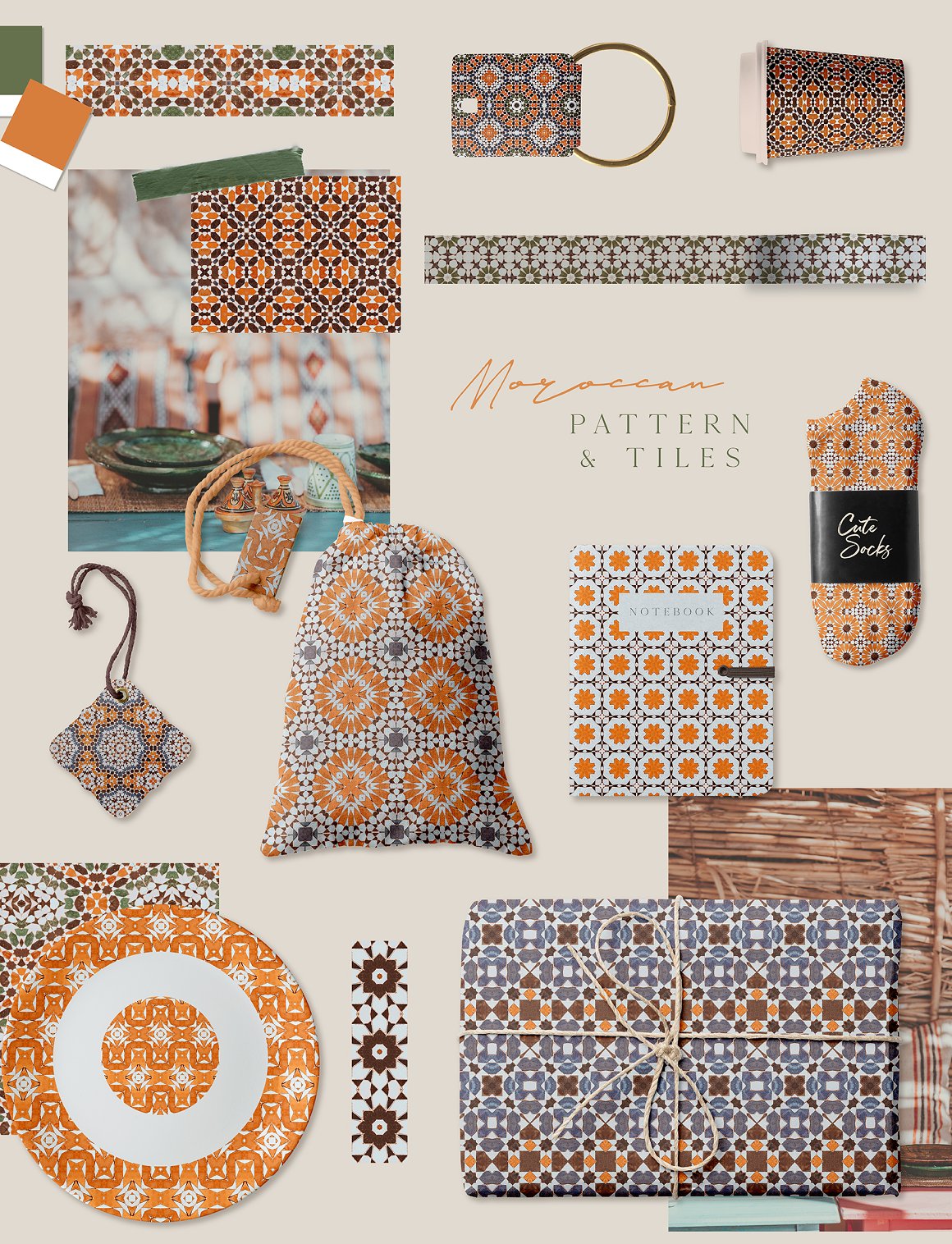 Moroccan Seamless Patterns and Tiles great for fabric, wallpaper, wrapping paper, posters, cards, branding, covers, gifts, social media accounts, scrapbooking, stickers, sites, blogs, invitations and much more!