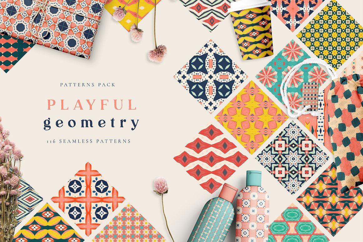 - 116 Playful Geometry Seamless Patterns [ .jpg, 3600×3600 ];