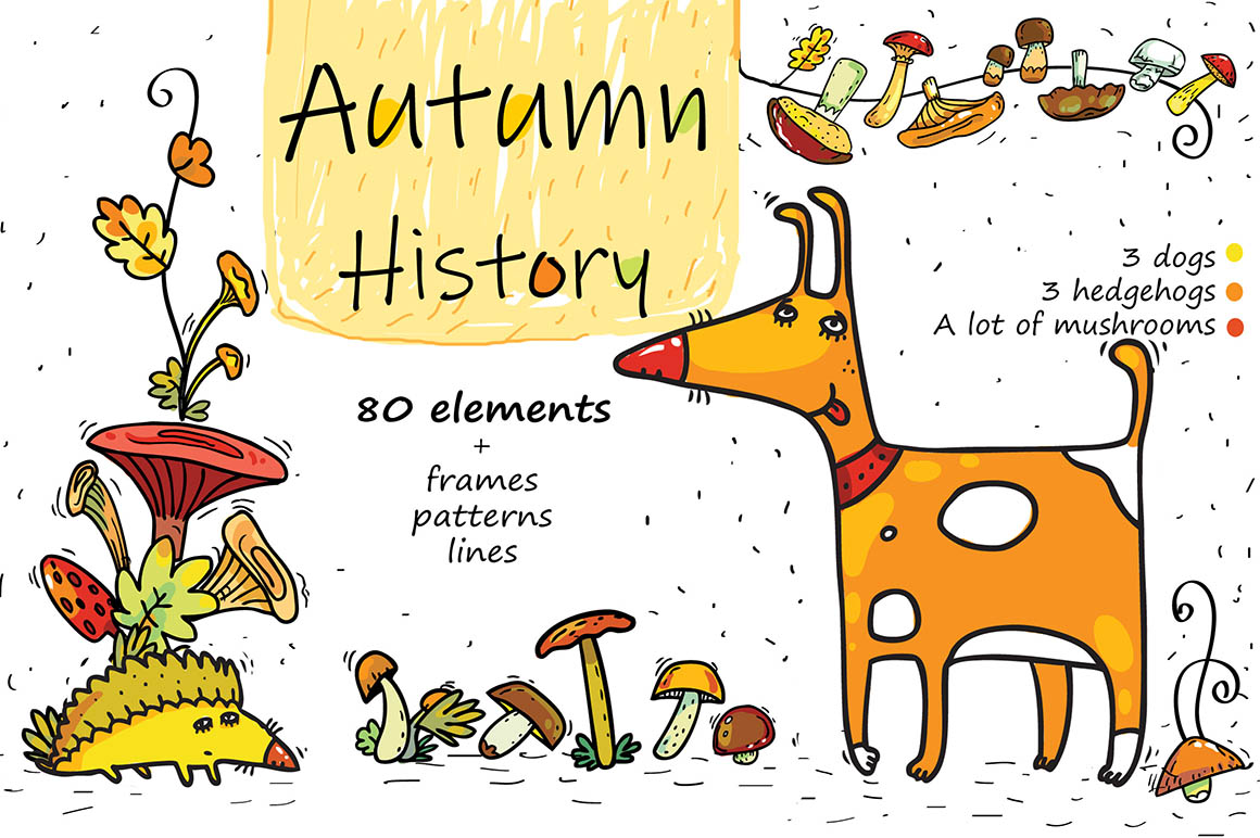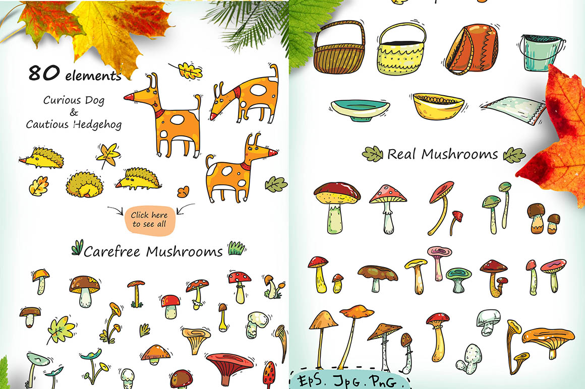 - 80 elements – Dog, Hedgehog and mushrooms, and also some requisite:)