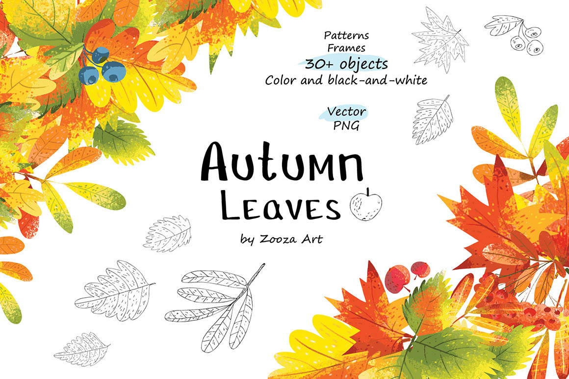 2. Autumn Leaves – patterns, frames from Zooza Art