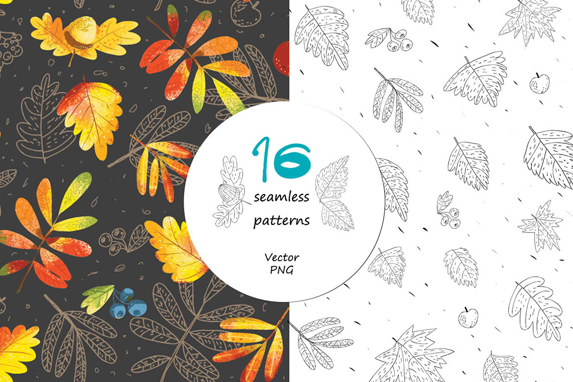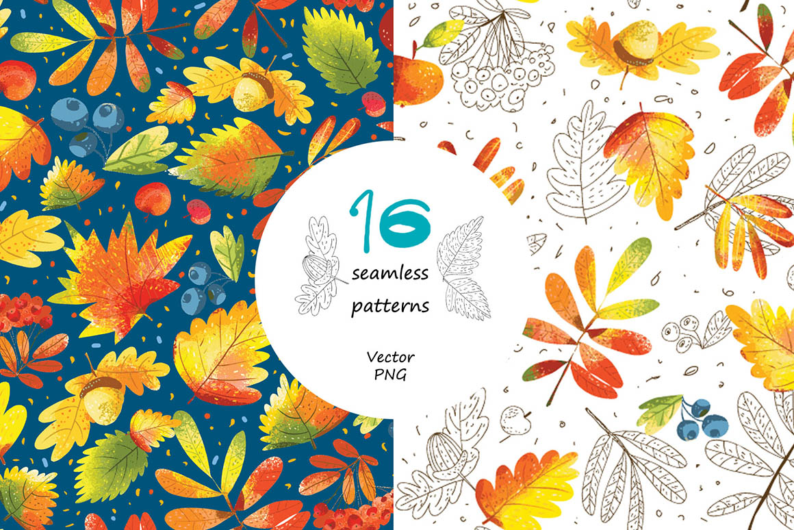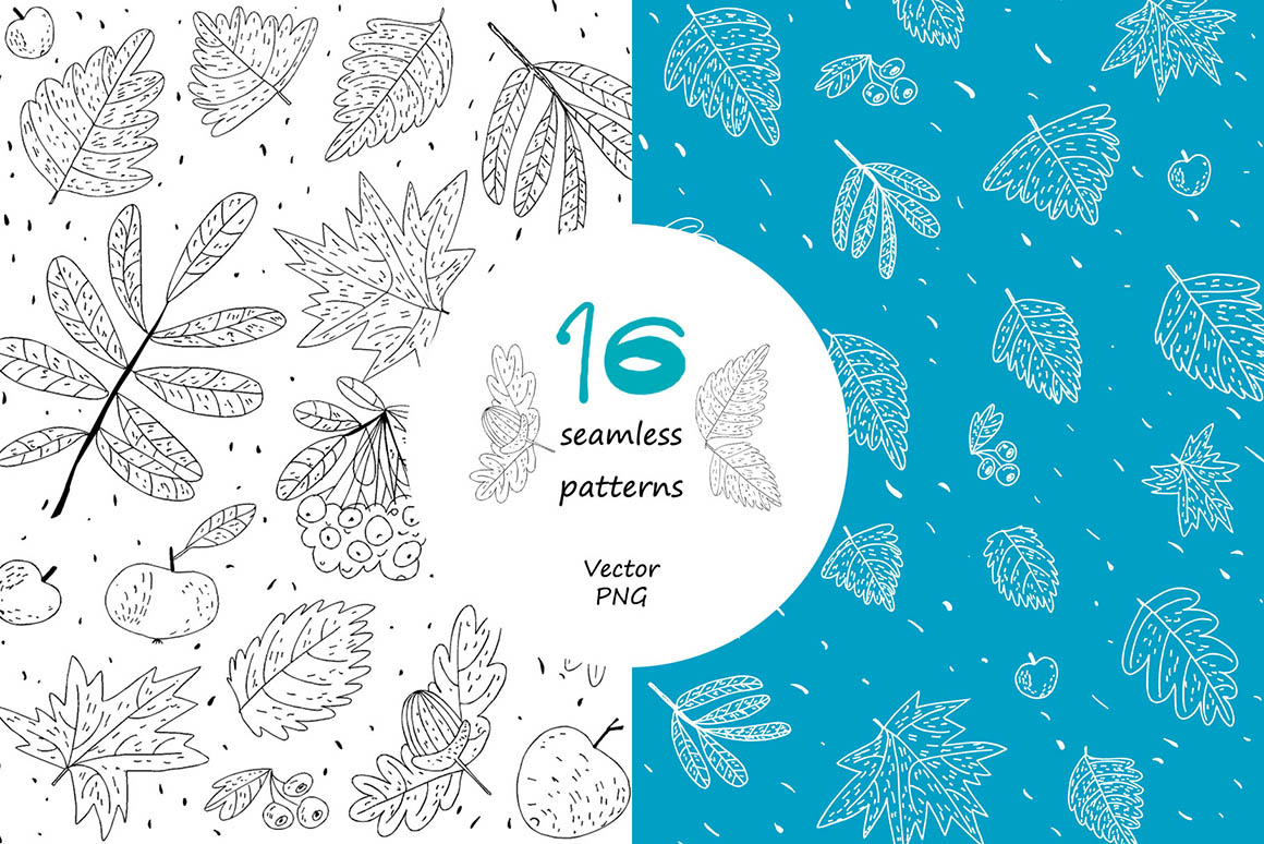 - 16 seamless patterns (2480×3508 px, 2000×2000 px, 300 DPI, vector, PNG, JPG)