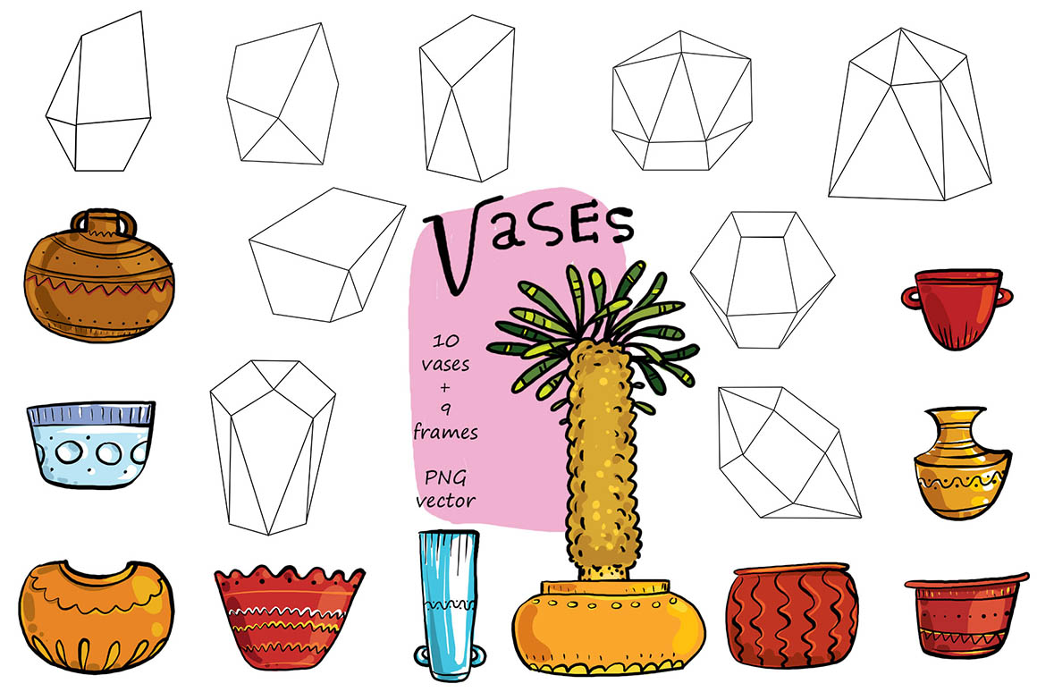 - 10 Vases in 10 PNG and 1 common PNG (300 DPI, 2000x2000px, transparent background)