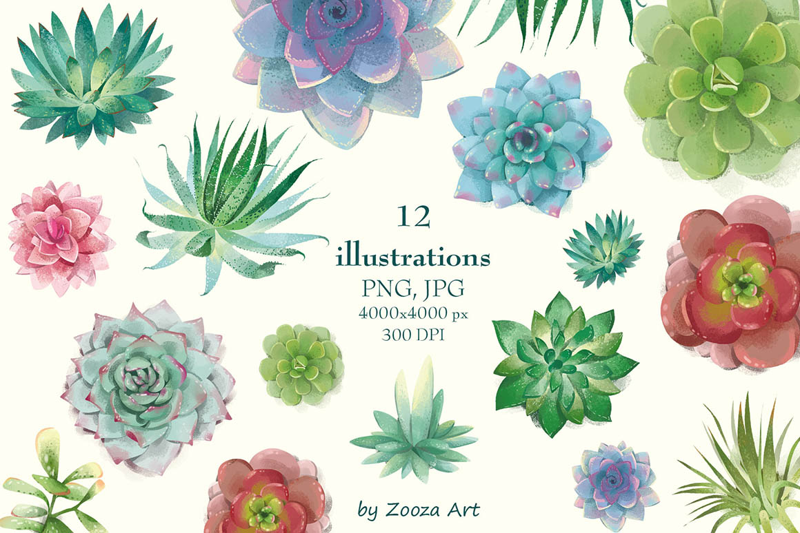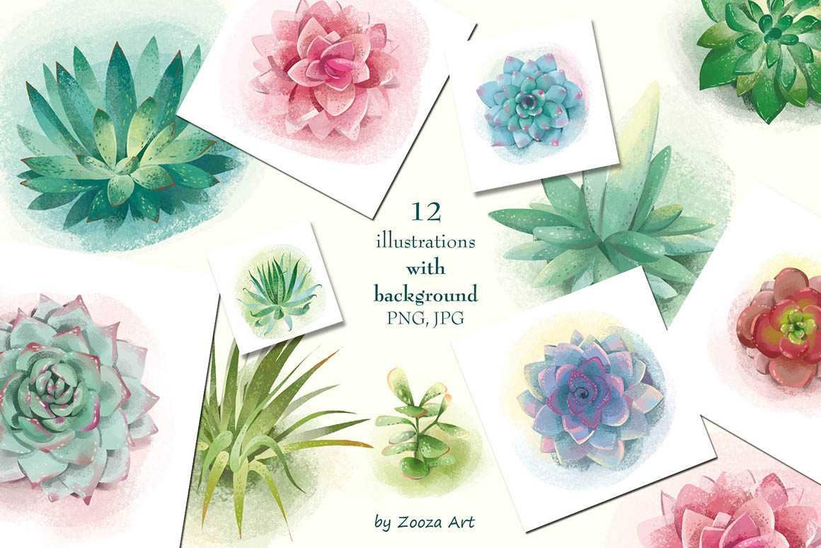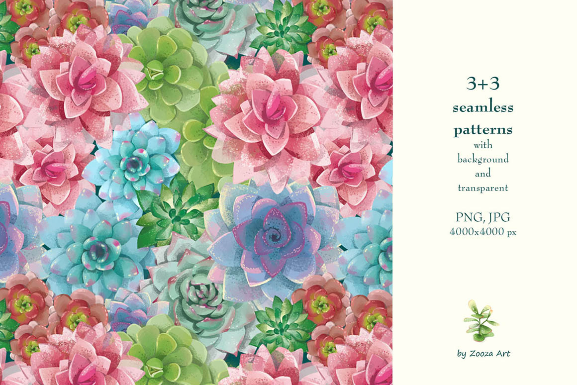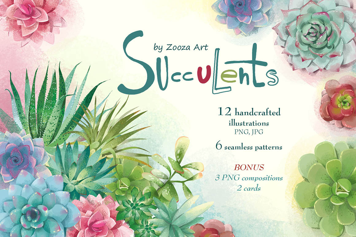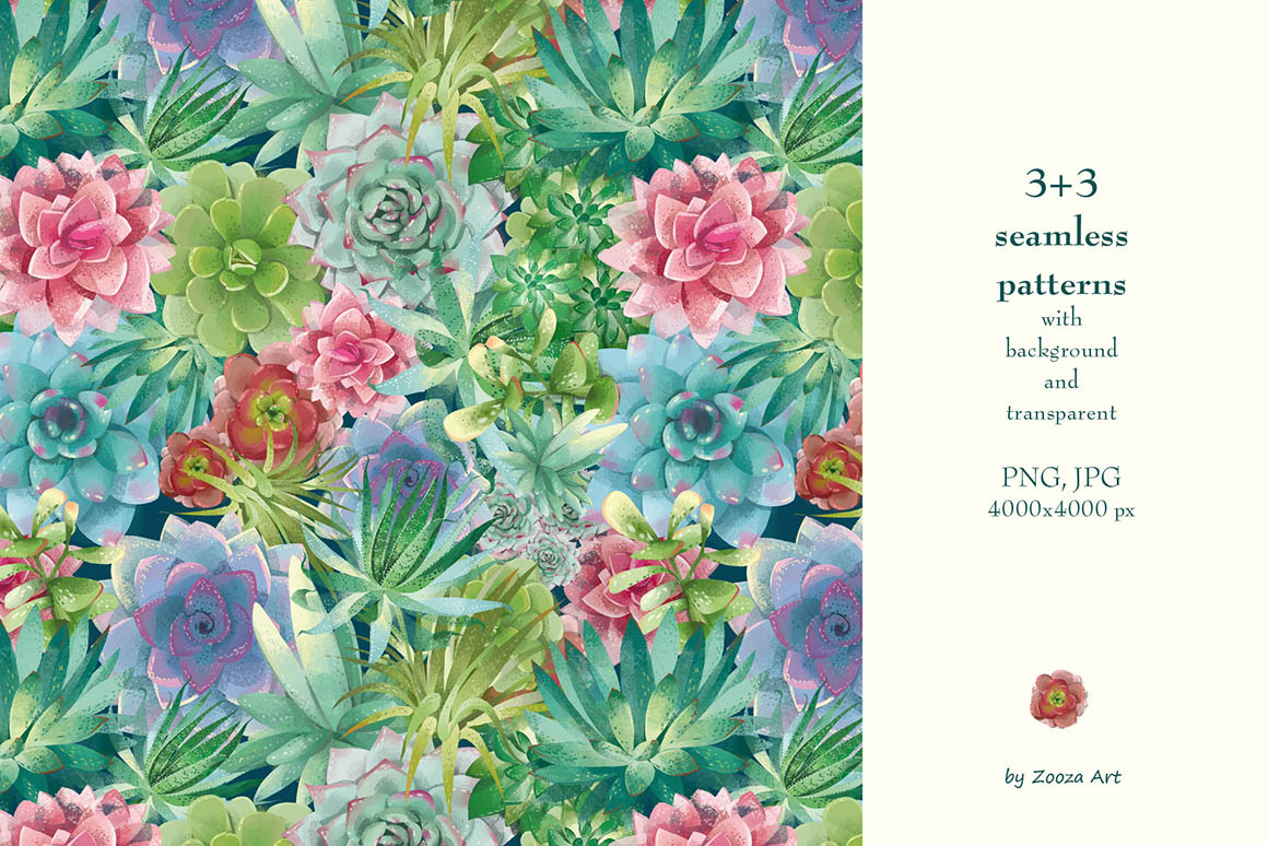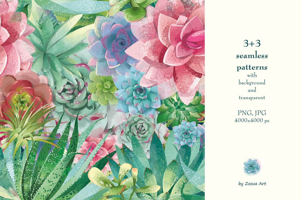 1. Succulents: 12 images, 6 patterns from Zooza Art