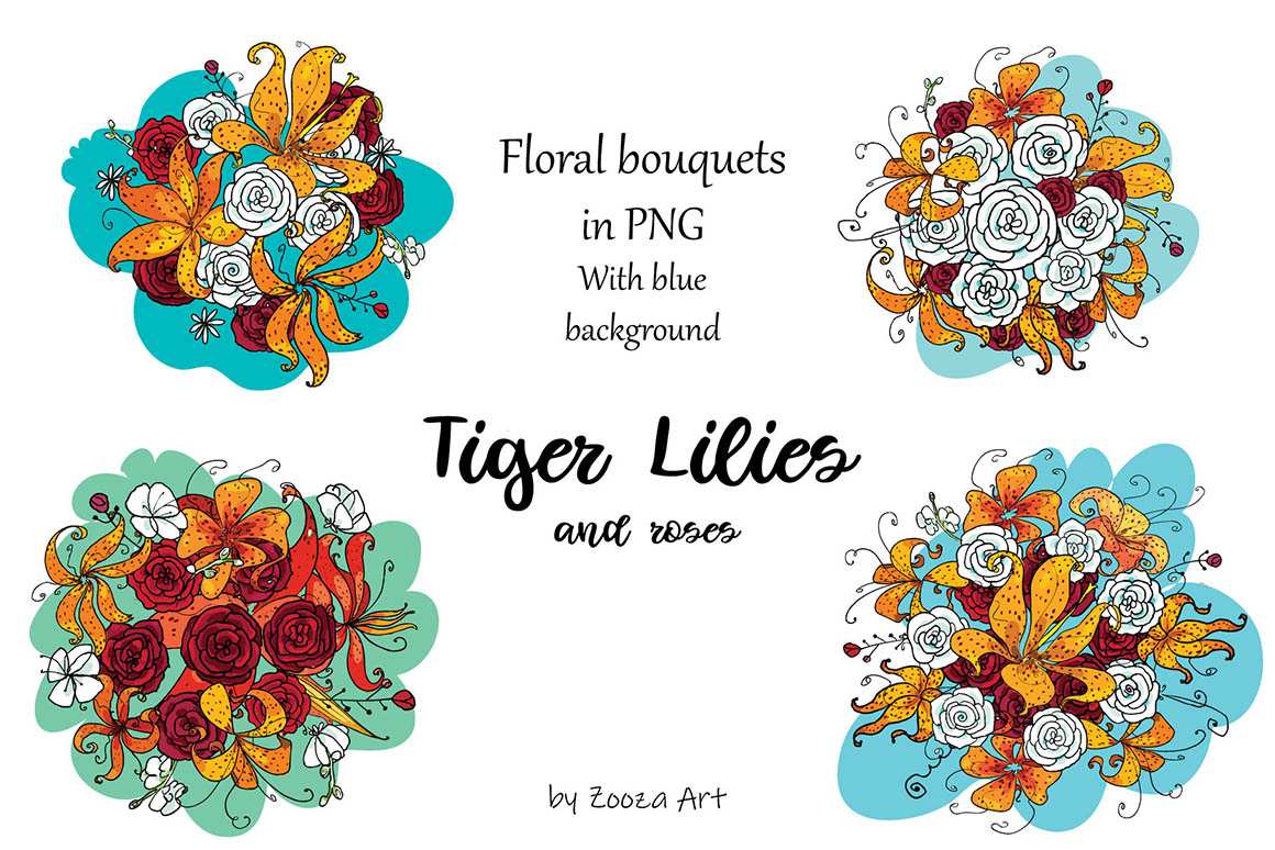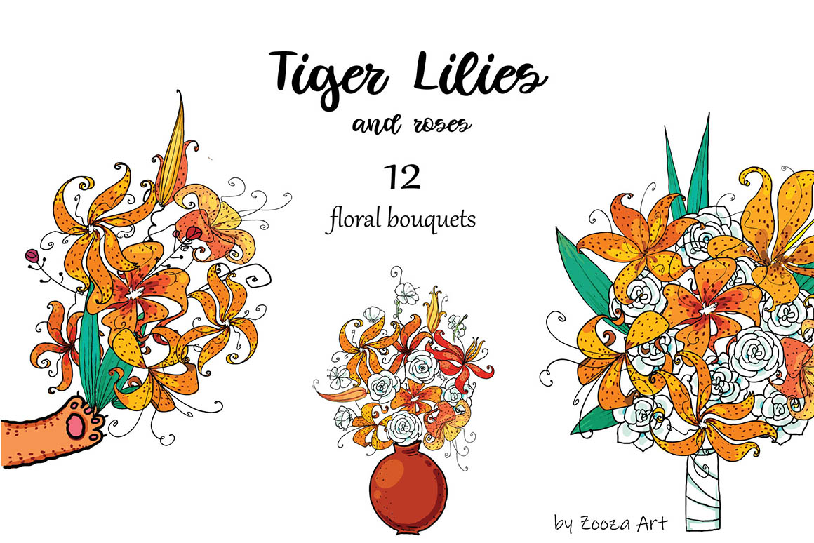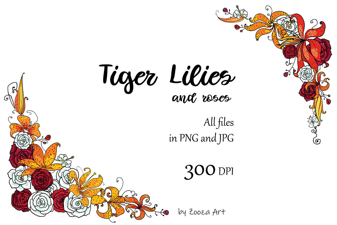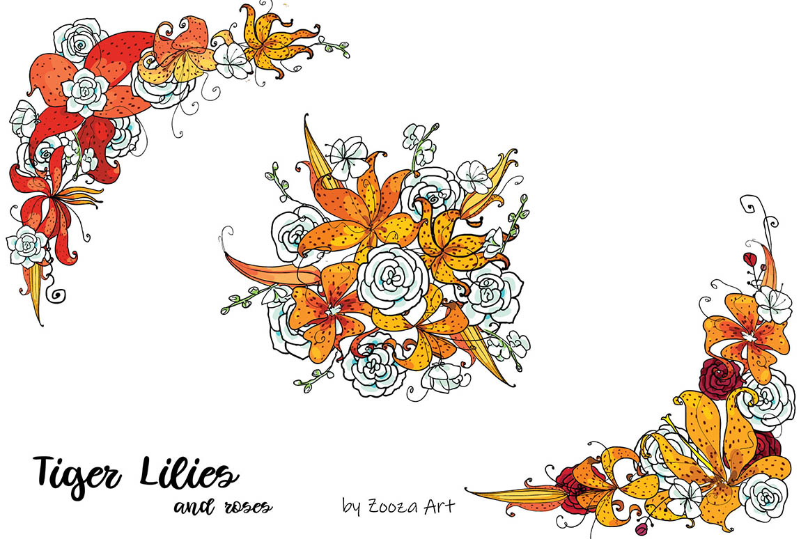 5. Tiger Lilies & Roses – clip-art from Zooza Art