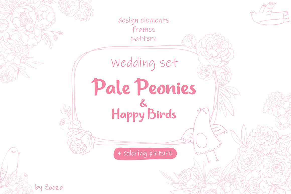 9. Wedding set: Peonies & Happy Birds from Zooza Art