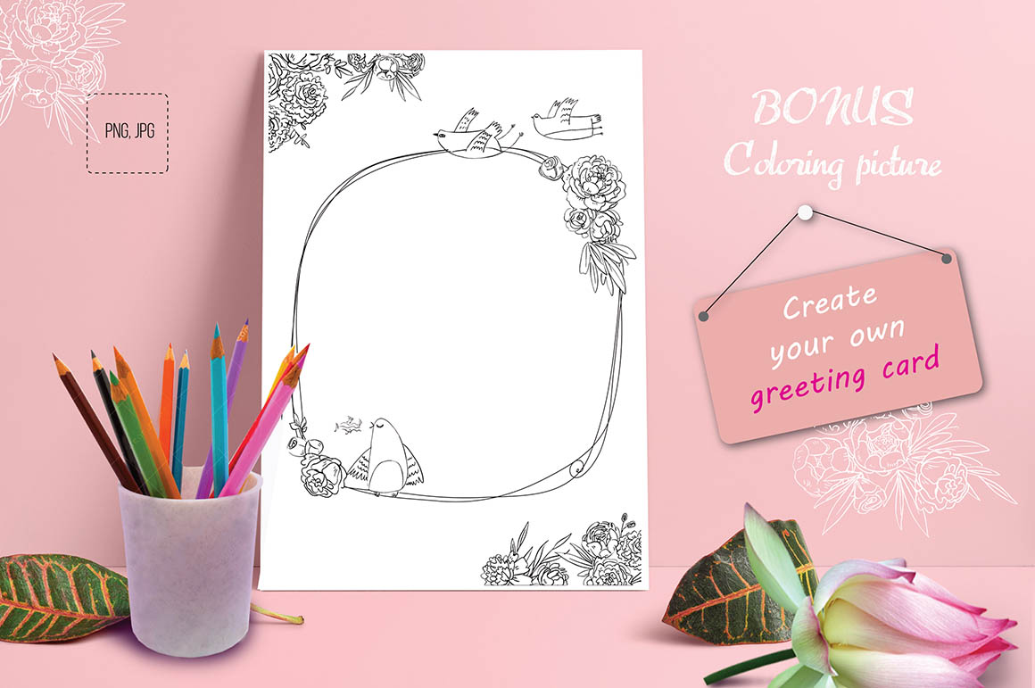 I’m glad to introduce so tender and cute wedding set, which will be best in white and rose colors. Enjoy rich compositions with peonies and add little Happy Birds for having fun:) Make touching invitations, greeting cards, web design, wallpapers, beautiful lettering or whatever.