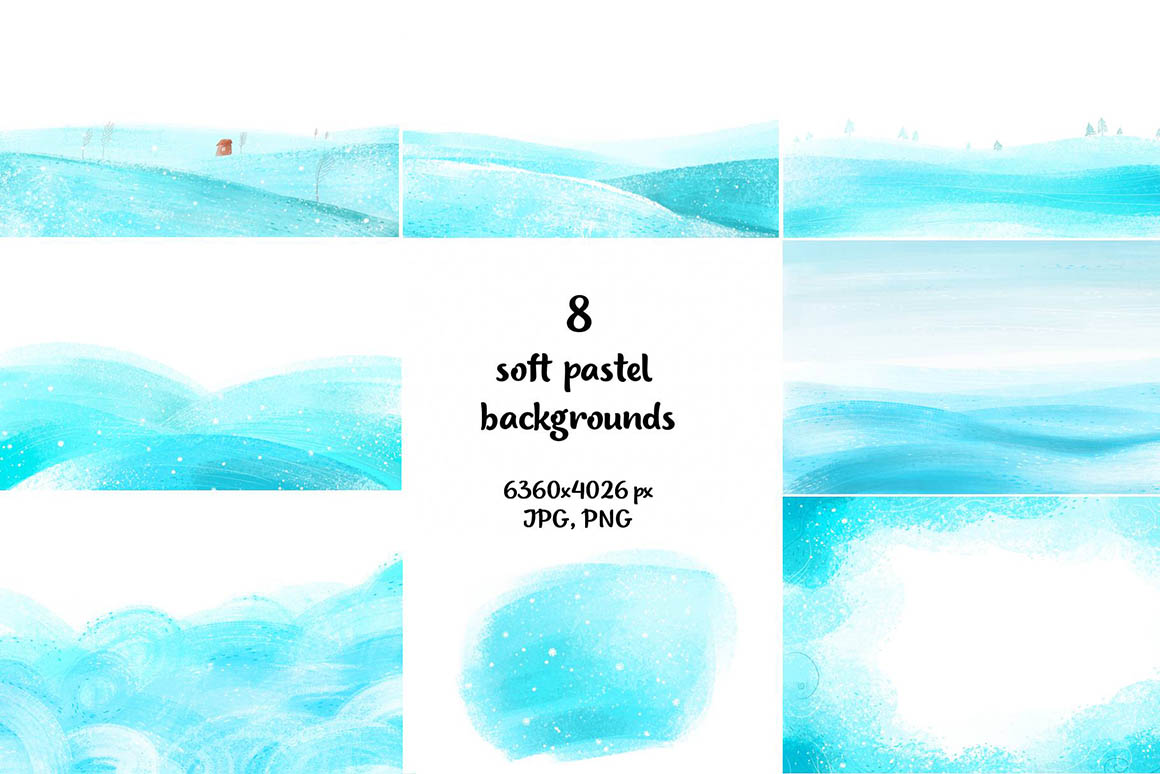 8 snowy pastel backgrounds to make this winter holidays really warm! High resolution and big size, PNG files with transparent background, handcrafted texture – everything for enjoying your design process:)