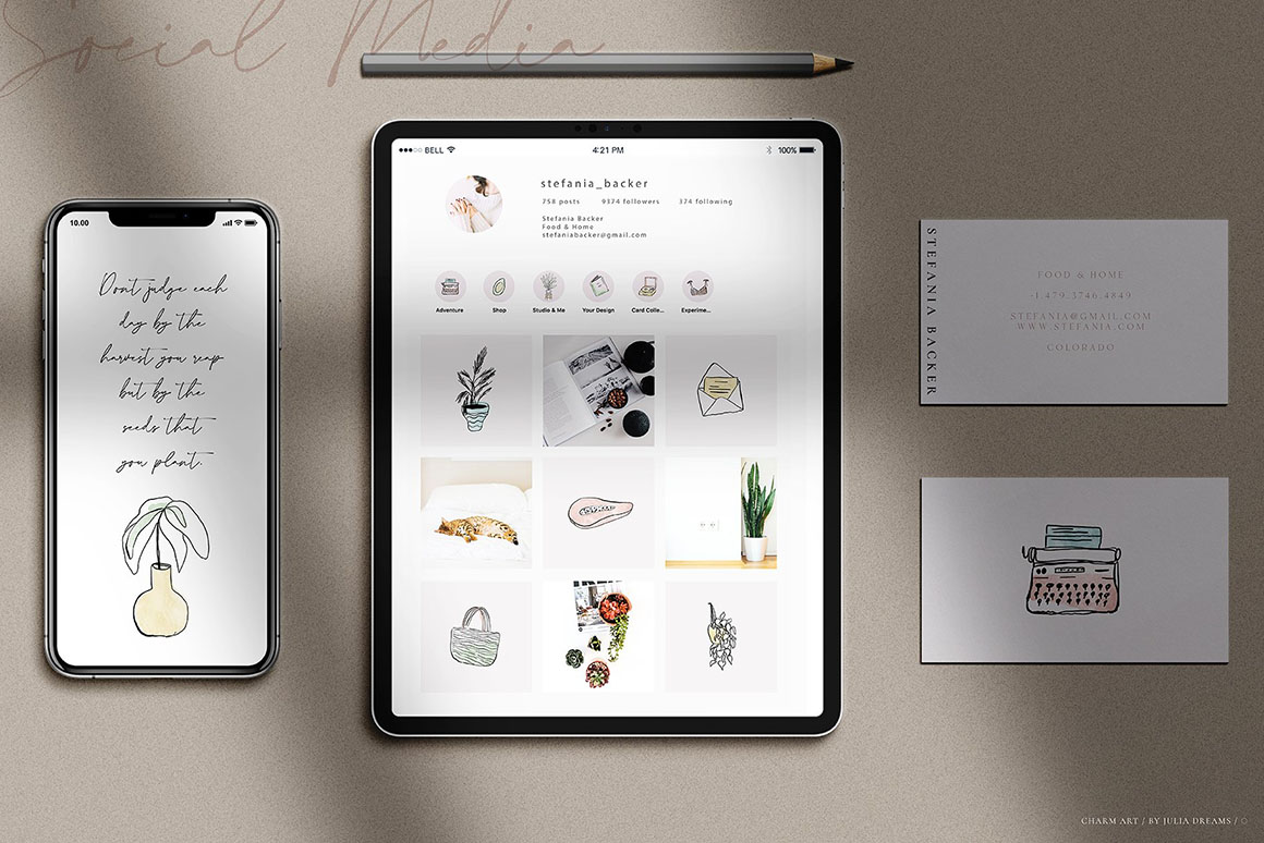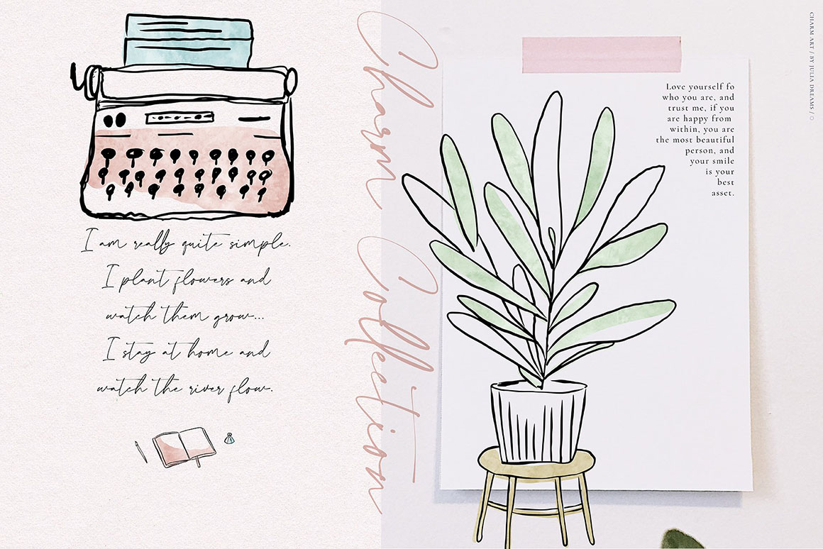 Charm Art Collection great for logo, posters, cards, branding, covers, gifts, social media accounts, wrapping paper, wallpaper, fabric, scrapbooking, stickers, sites, blogs, invitations and much more!