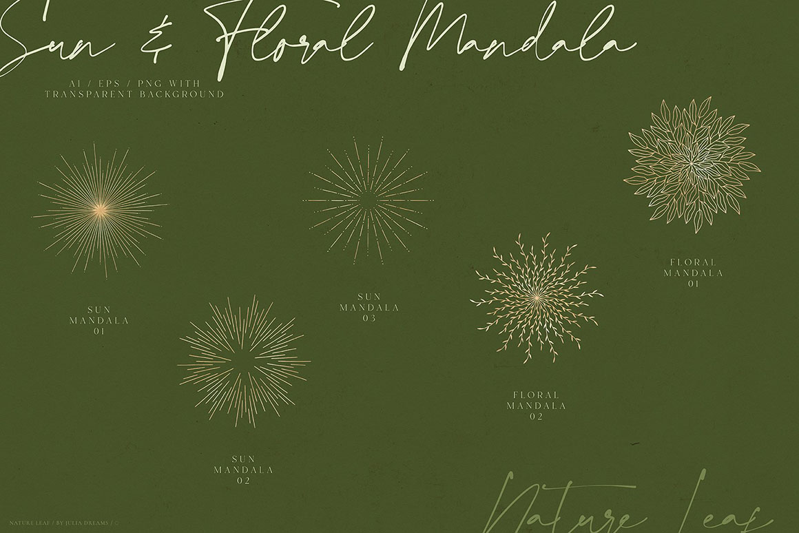 - 5 sun & floral mandala – ai, eps and png with transparent background