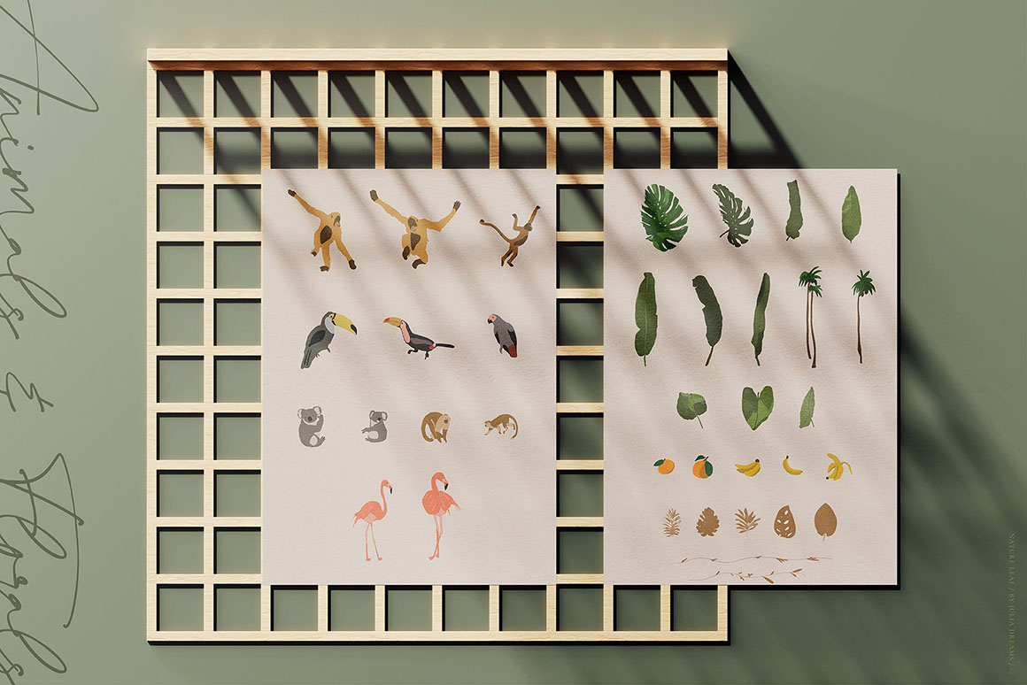 Nature time! This is a great addition to create branding for your business, greeting card, photo frames and other beautiful things. Just add ready-made graphics: patterns and compositions. But also a big variety of individual elements: illustrations, floral mandala and more. These elements are ideal for the creation of the corporate identity of your shop or your small store. Or if you suddenly need to decorate your room or create a wedding invitation. Add this beautiful hand painted elements and florals to create a postcard.