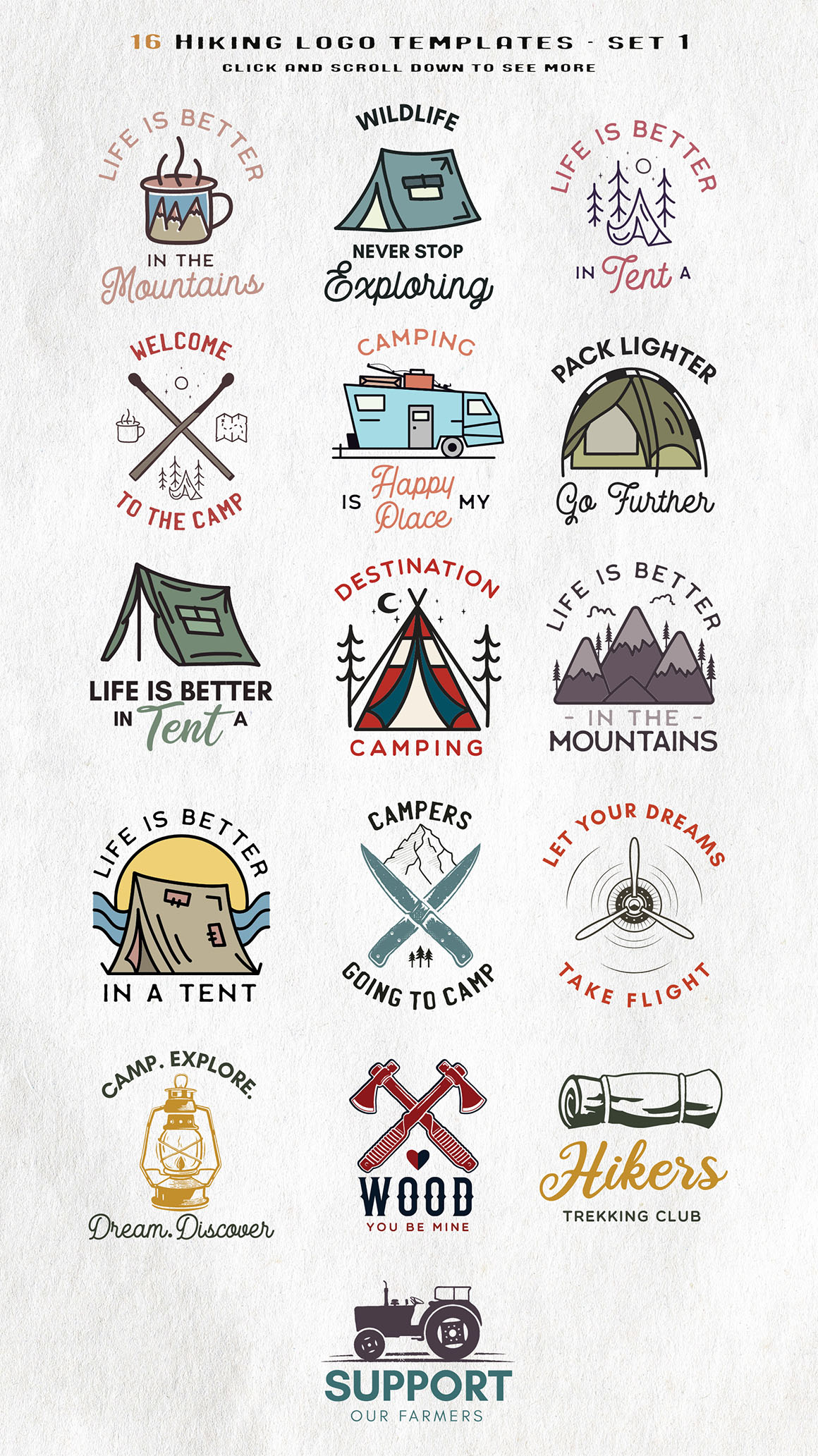 All these graphics from JeksonGraphics are editable in Adobe Illustrator and also in Adobe Photoshop (lot of file formats so you can work with these graphics almost in all graphic design softwares). This bundle includes traveling and outdoor badges, mountain & adventure style, hiking emblems and more!