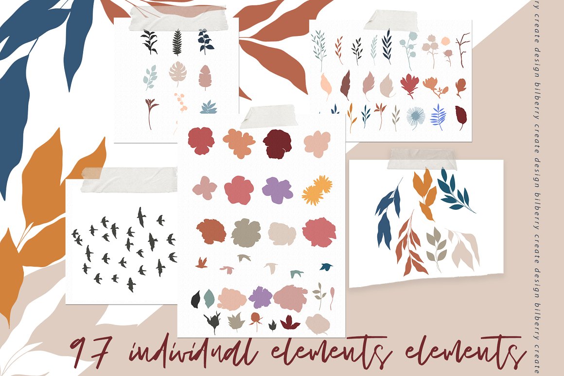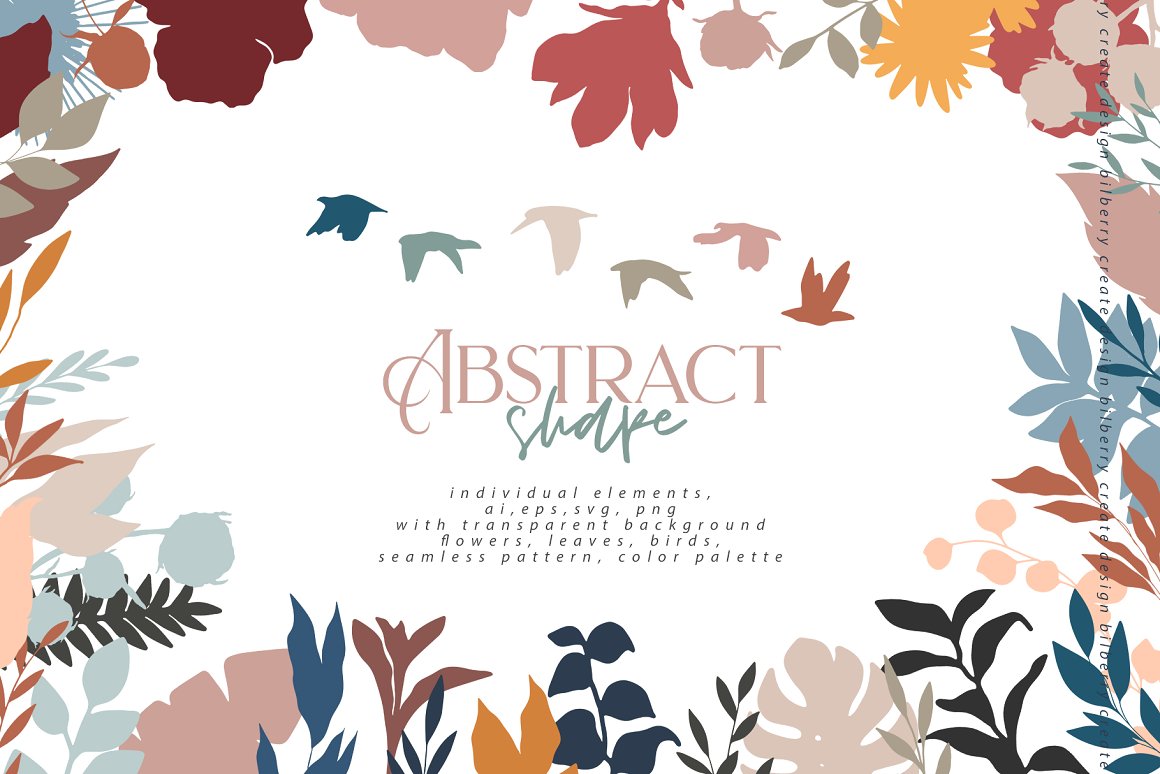 Abstract shape NEW design set filled over 116 elements, flowers, birds elements, leaves, seamless pattern. Be sure to click on the image to see all elements. Abstract shape❤️ a stylish set in modern abstract art style looks great on fabric, textile, wrapping paper, room design, branding, product packaging. Be sure to click on the image to see all elements.