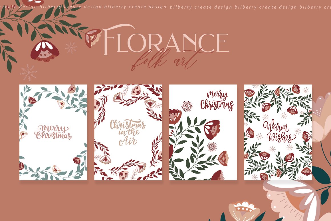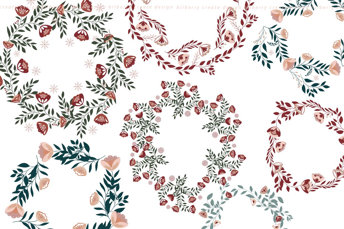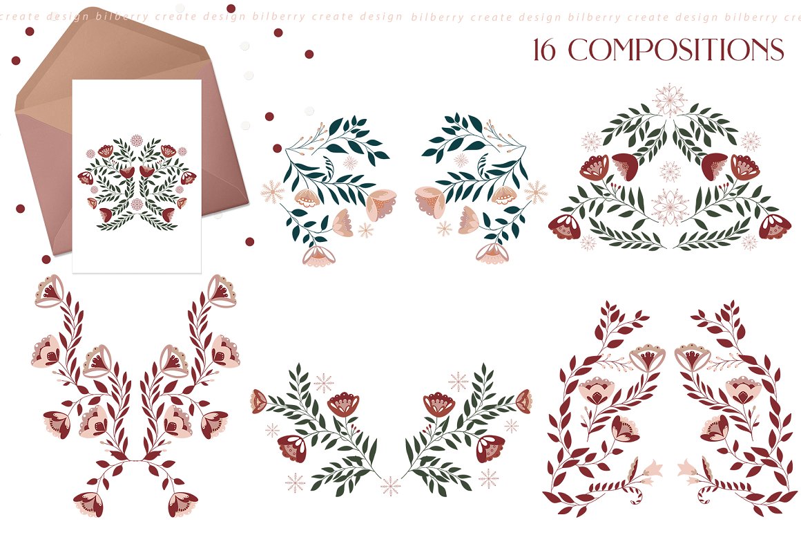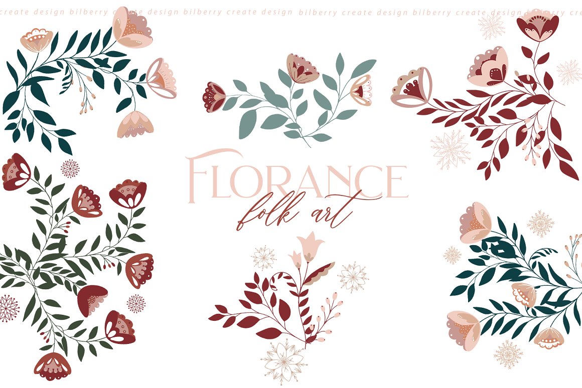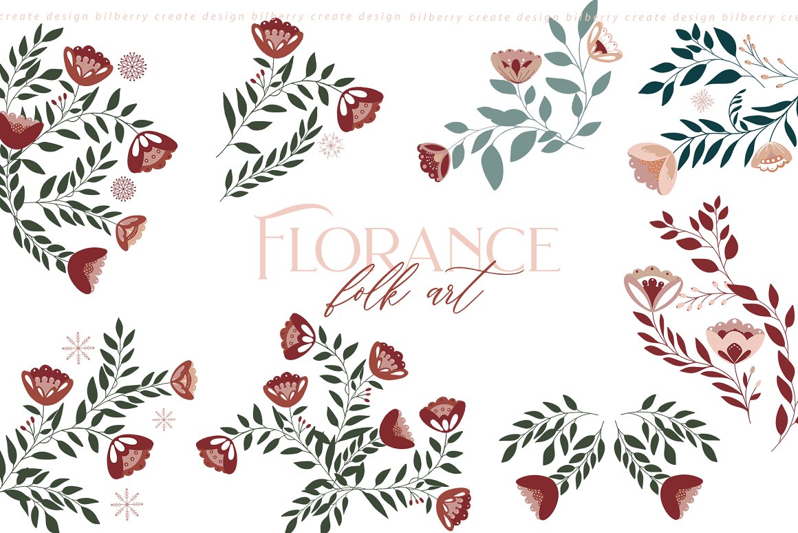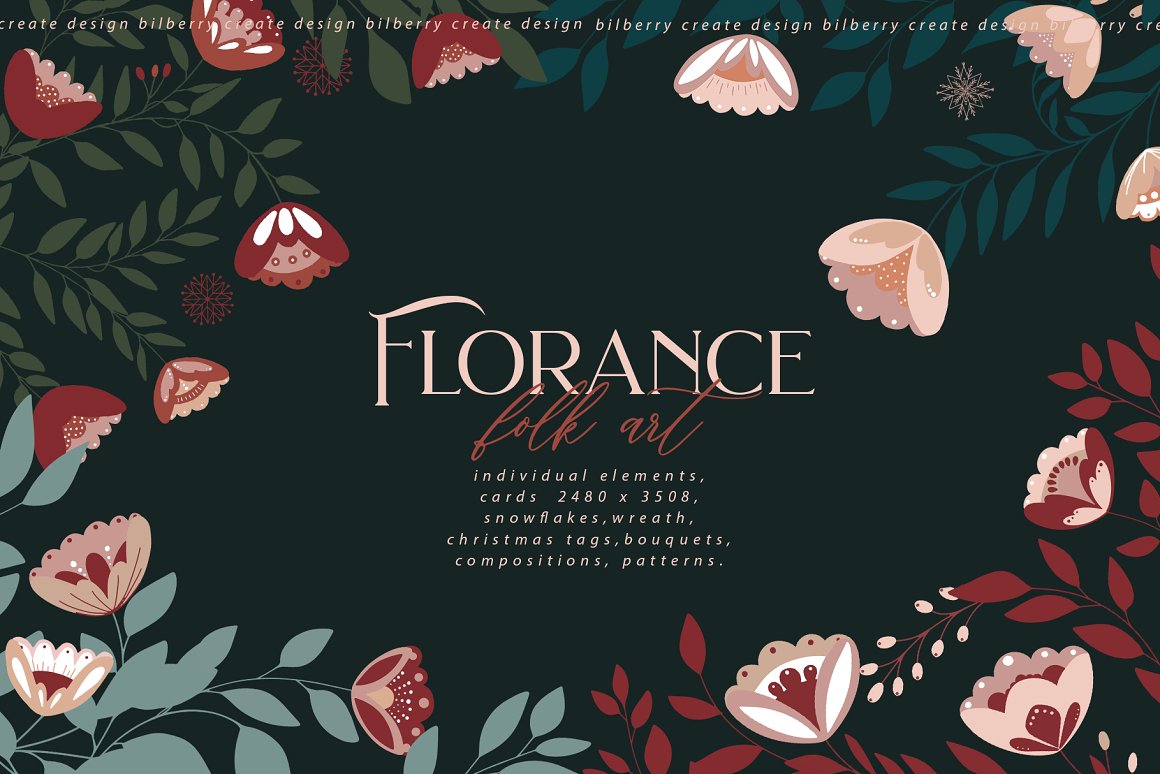 Florance folk art NEW design set filled over 125 elements, cards 2480*3508, snowflakes, wreath, Christmas tags, bouquets, compositions, seamless pattern and more… Be sure to click on the image to see all elements.