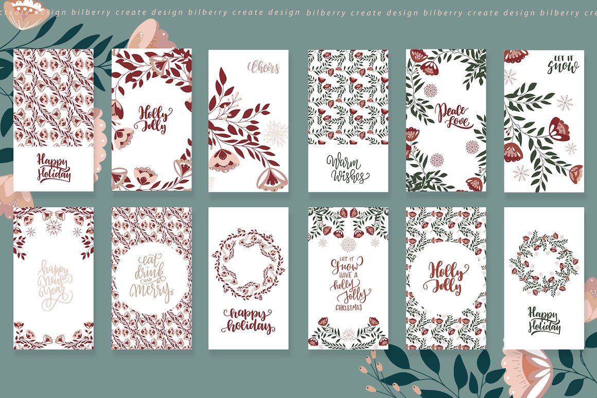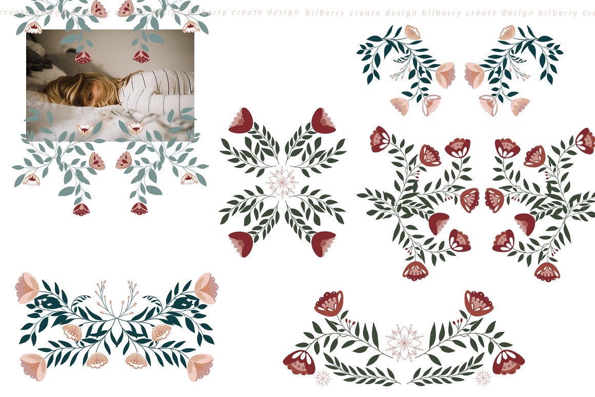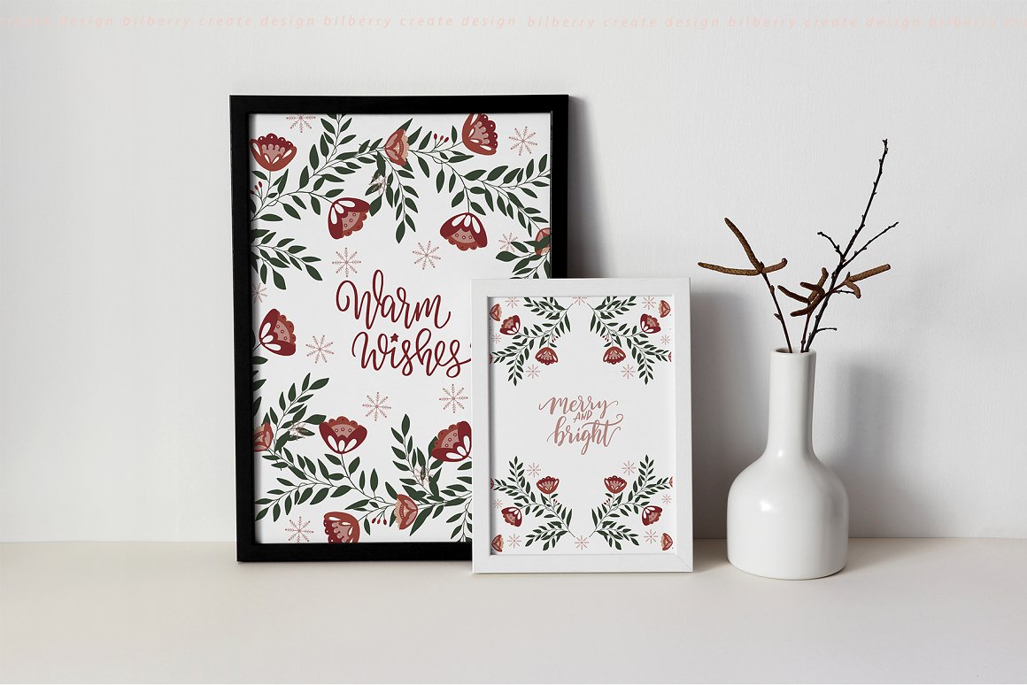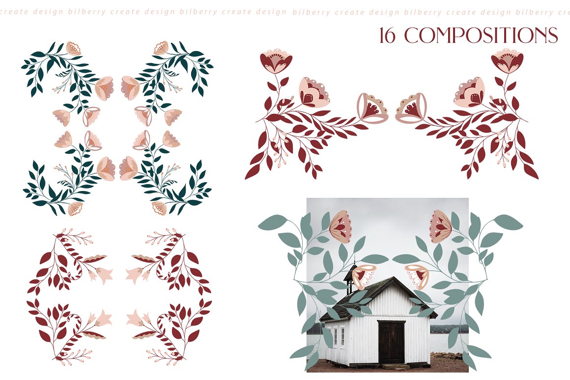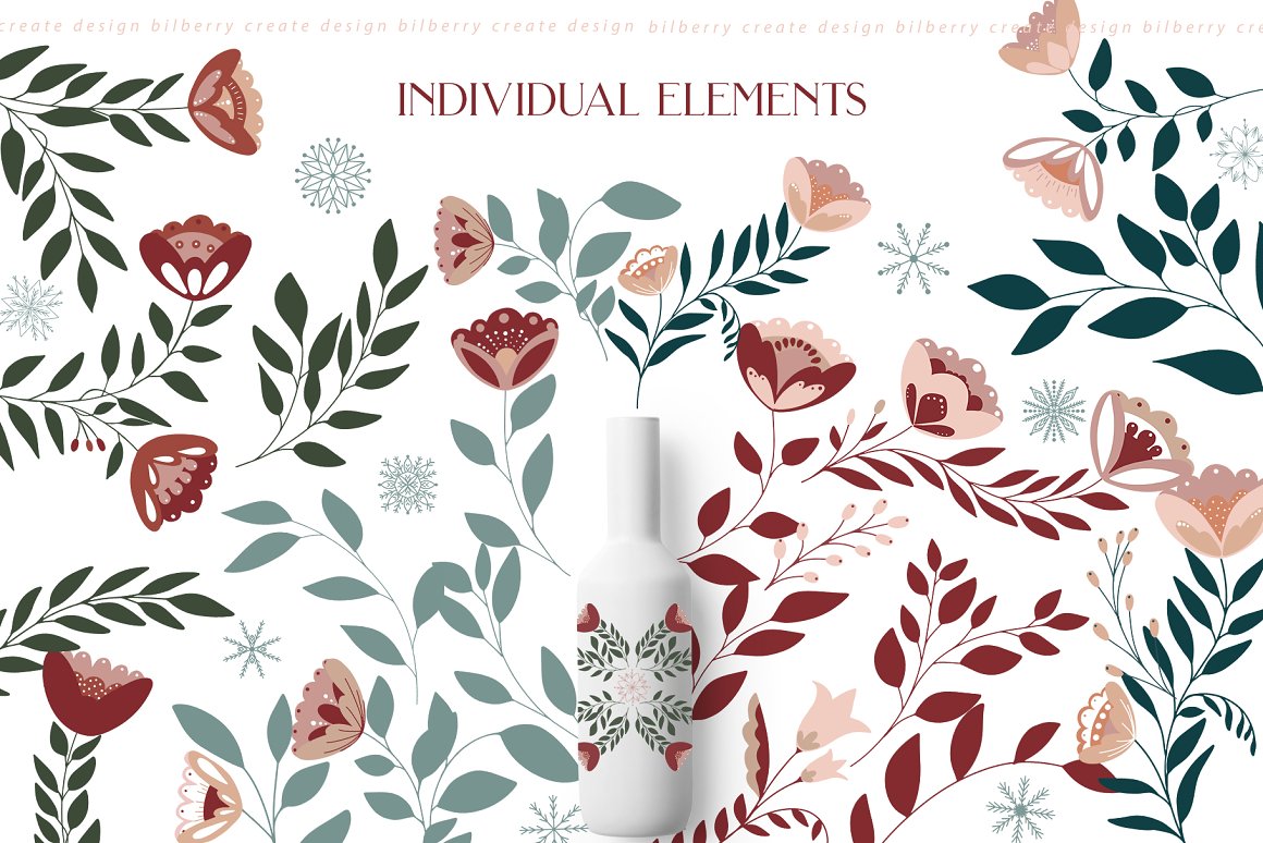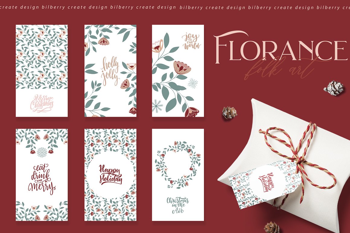 Florance folk art NEW design set filled over 125 elements, cards 2480*3508, snowflakes, wreath, Christmas tags, bouquets, compositions, seamless pattern and more… Be sure to click on the image to see all elements.